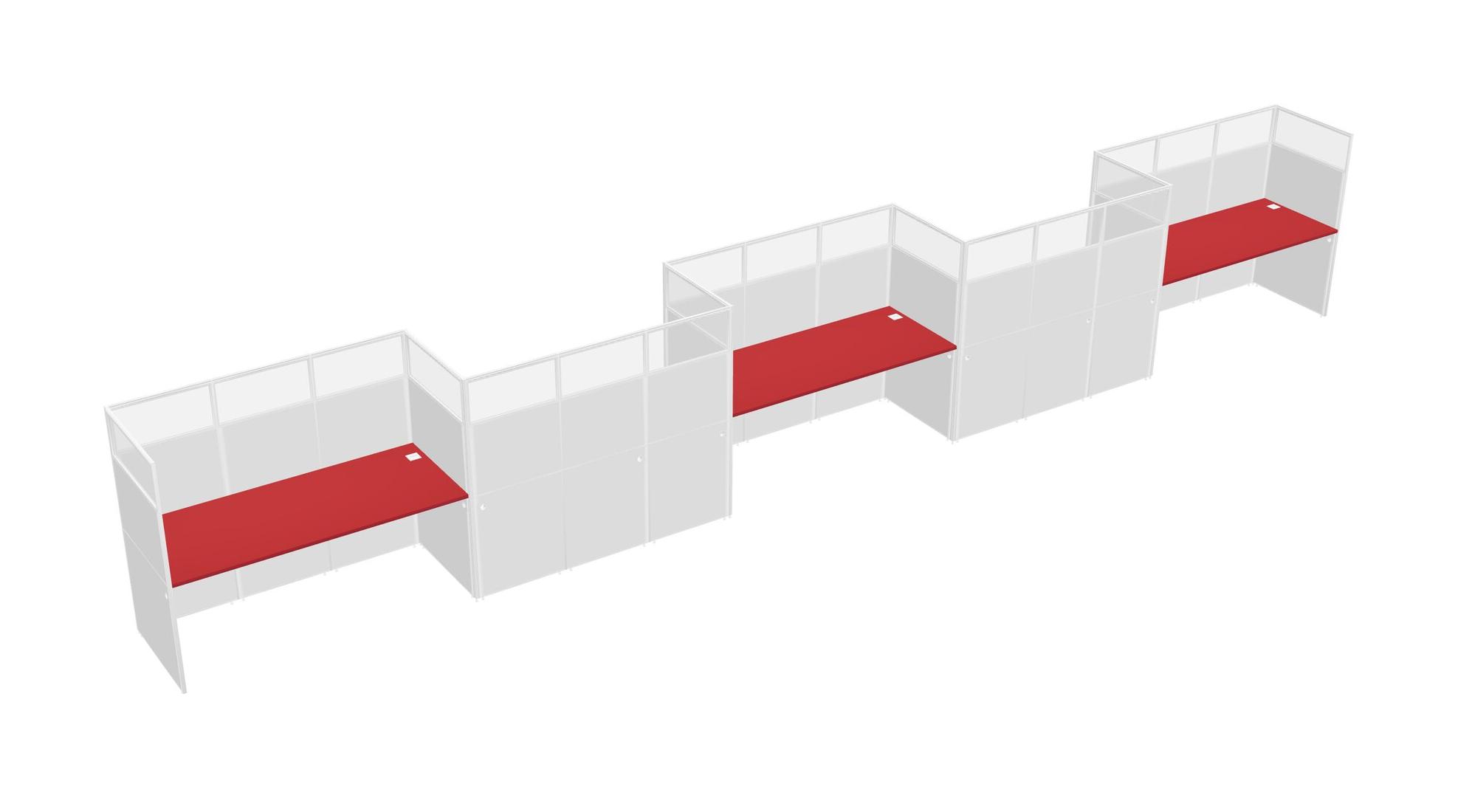 Prism Red Rectangular Cubicle Workstations For 5 - Zigzag Formation