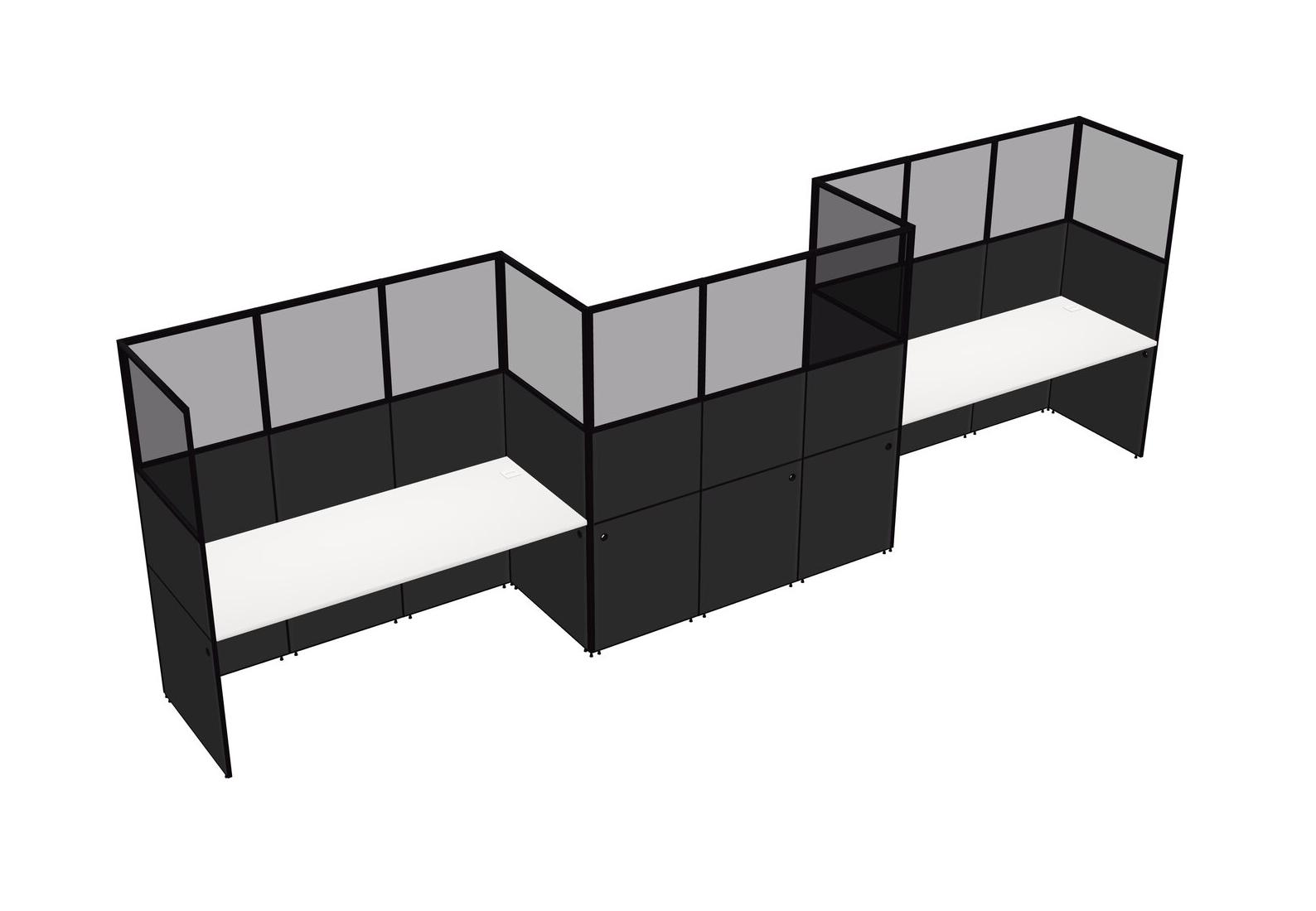 White Rectangular Cubicle Workstations For 3 - Zigzag Formation