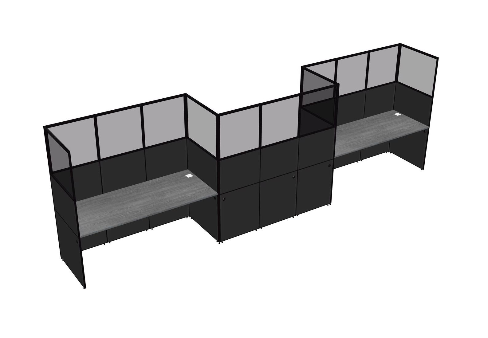 Grey Rectangular Cubicle Workstations For 3 - Zigzag Formation