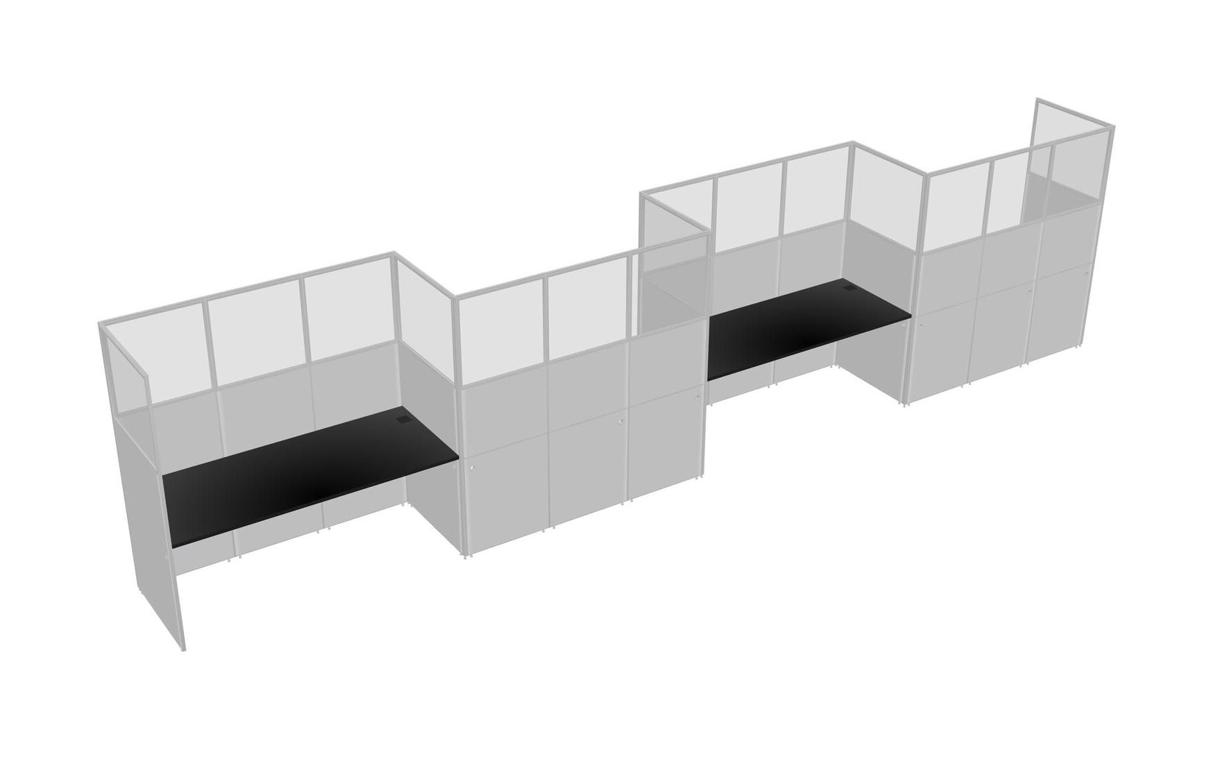 Black Rectangular Cubicle Workstations For 4 - Zigzag Formation