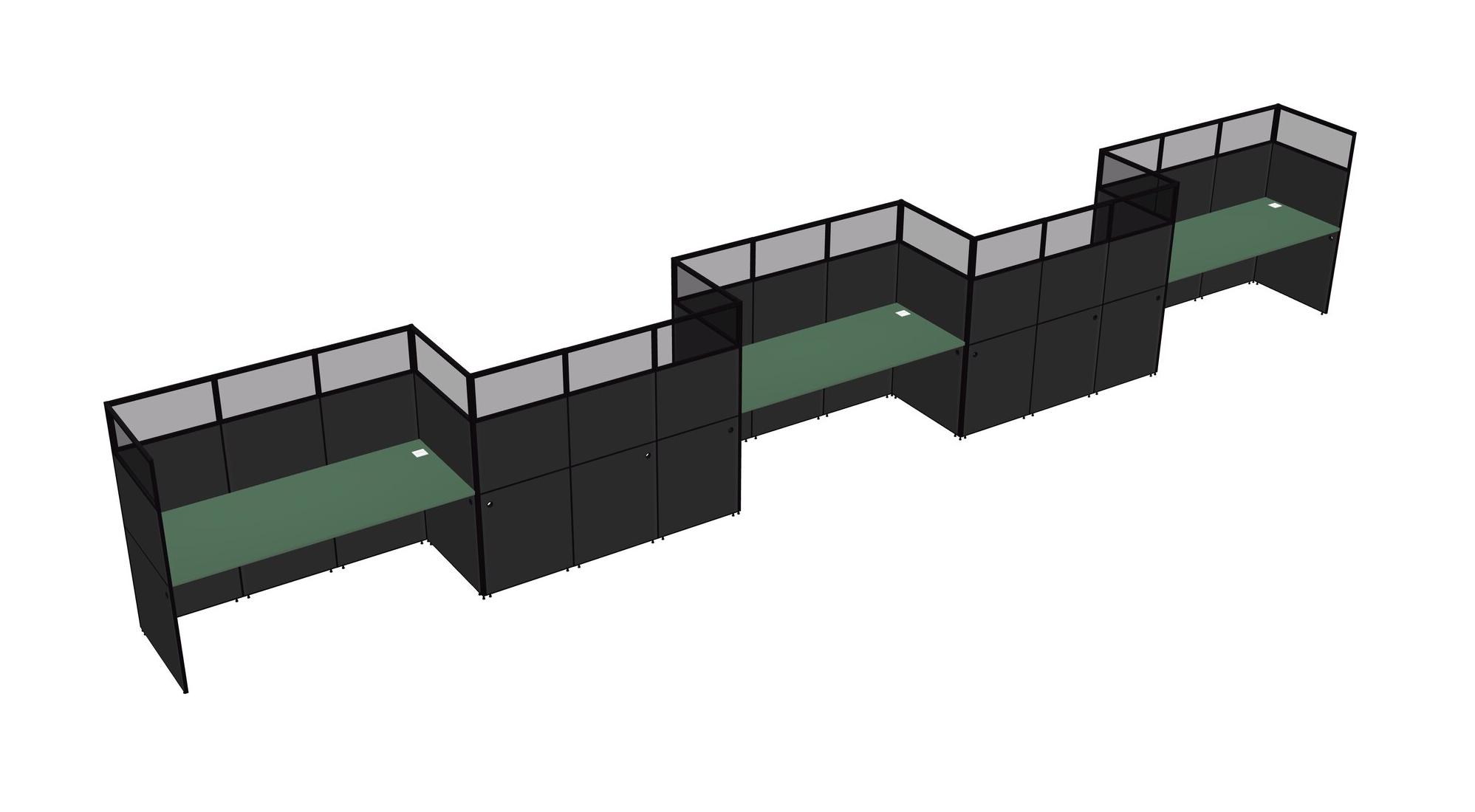 Green Rectangular Cubicle Workstations For 5 - Zigzag Formation