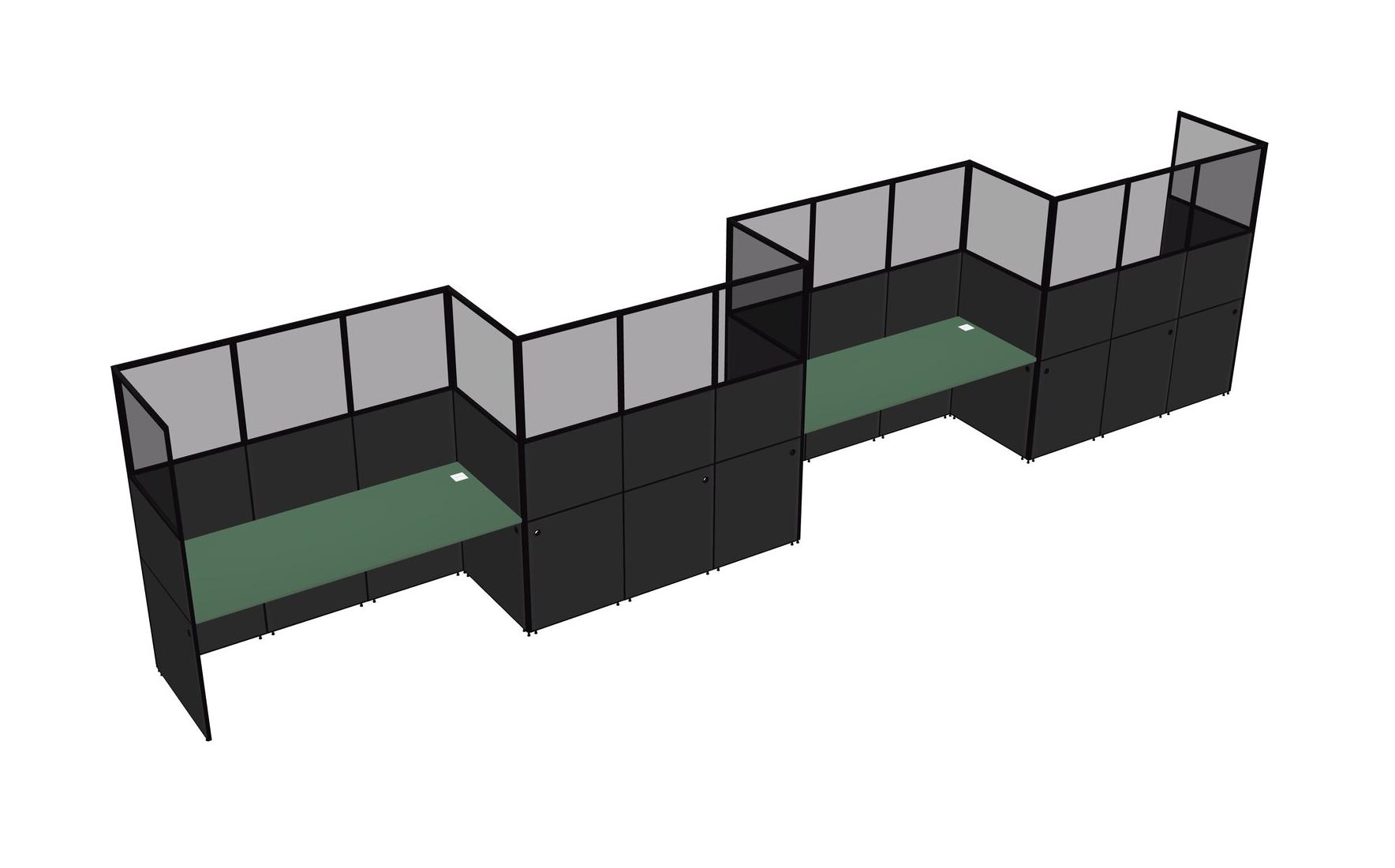 Green Rectangular Cubicle Workstations For 4 - Zigzag Formation