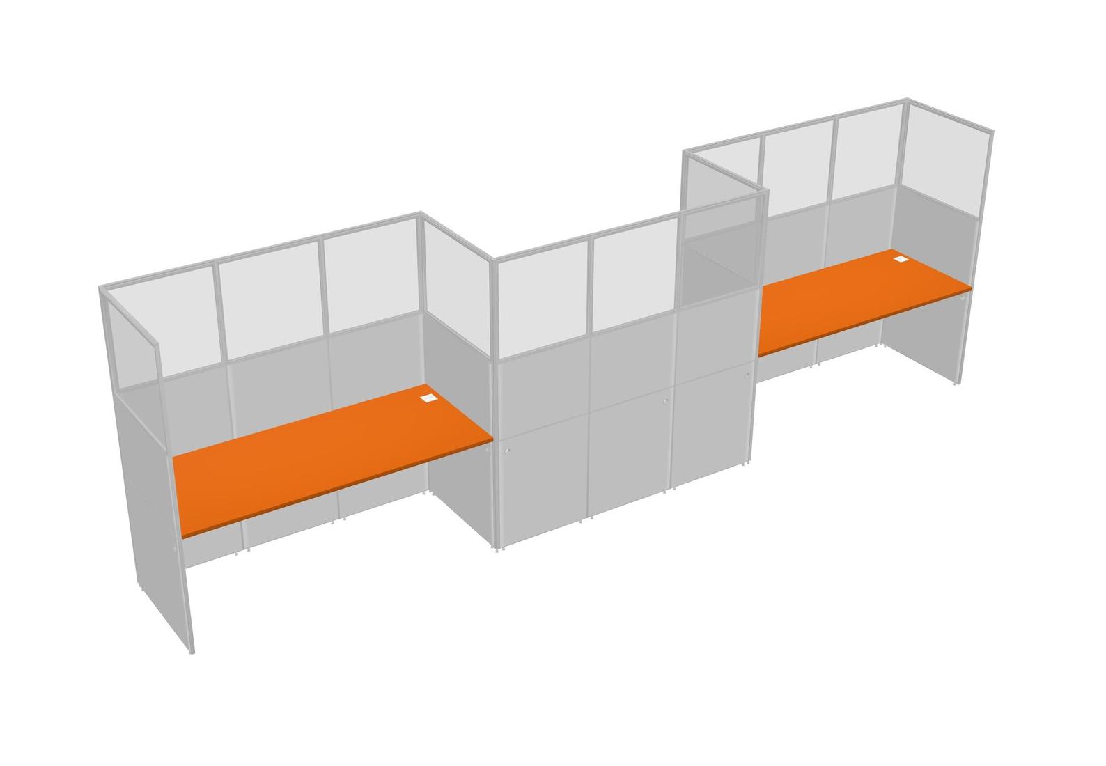 Orange Rectangular Cubicle Workstations For 3 - Zigzag Formation
