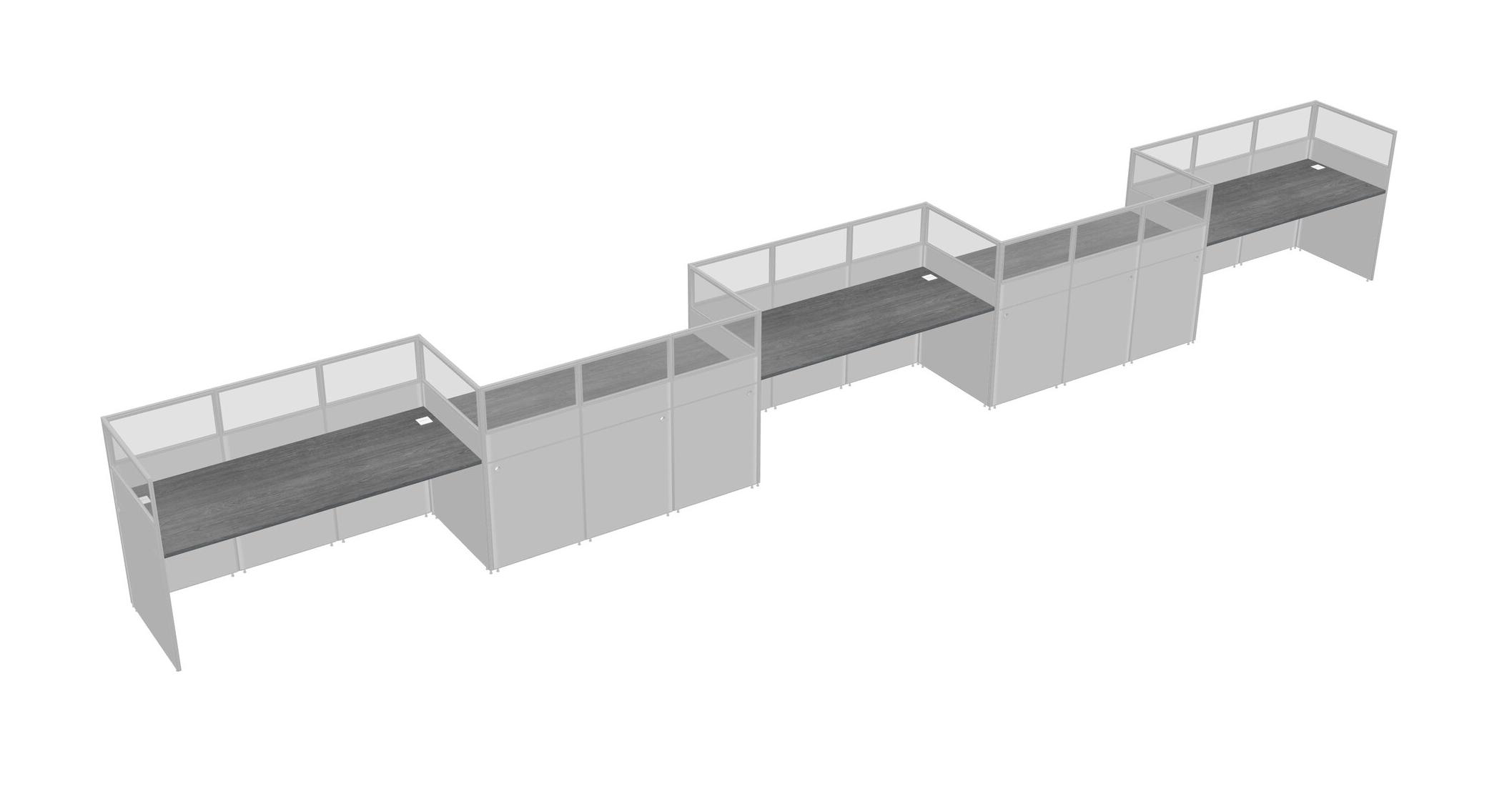 Grey Rectangular Cubicle Workstations For 5 - Zigzag Formation