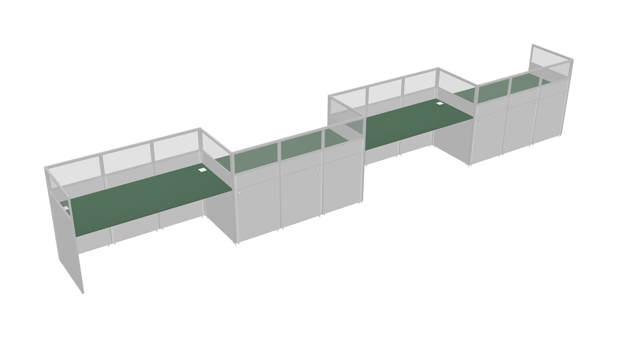 Green Rectangular Cubicle Workstations For 4 - Zigzag Formation