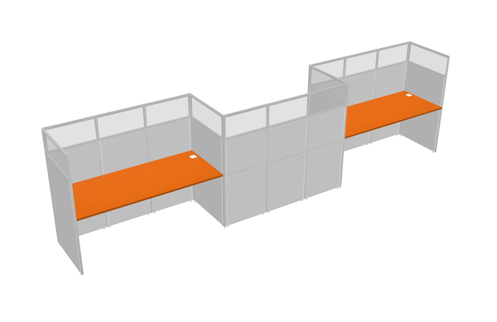 Orange Rectangular Cubicle Workstations For 3 - Zigzag Formation