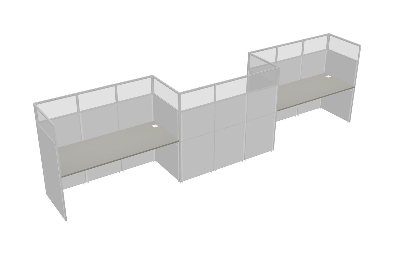 Grey Shadows Rectangular Cubicle Workstations For 3 - Zigzag Formation