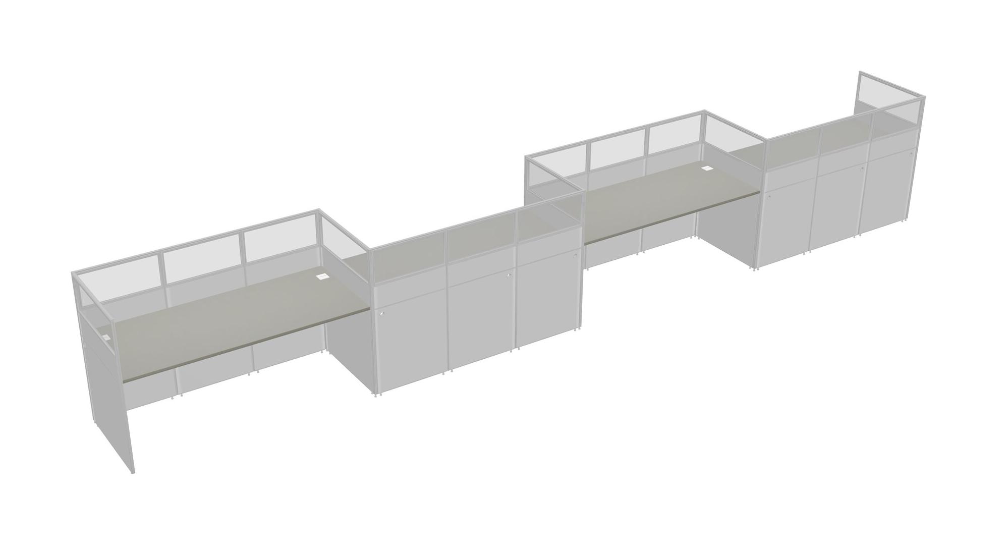 Grey Shadows Rectangular Cubicle Workstations For 4 - Zigzag Formation