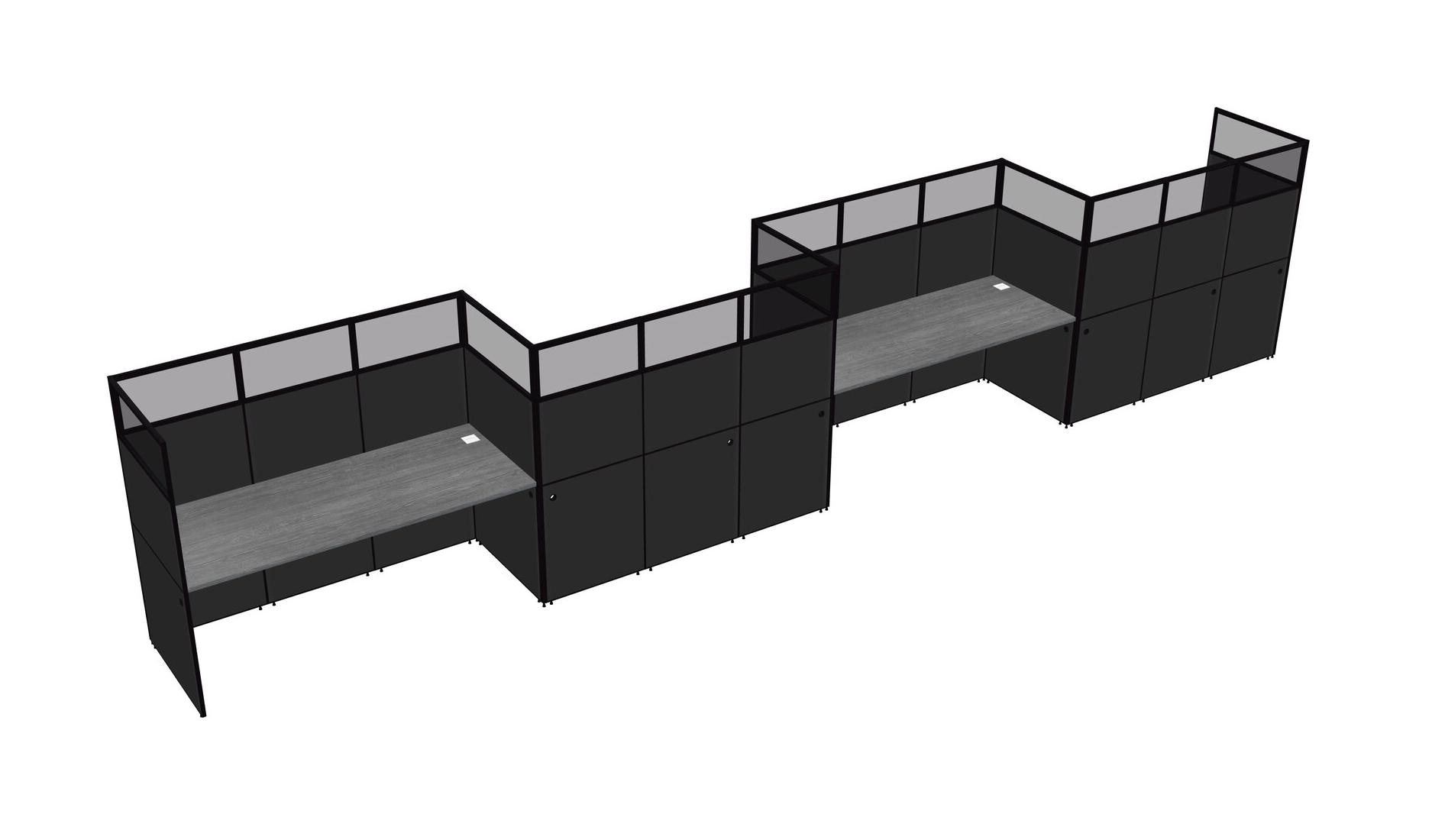 Grey Rectangular Cubicle Workstations For 4 - Zigzag Formation