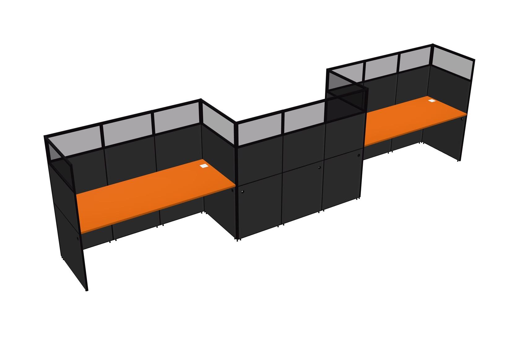 Orange Rectangular Cubicle Workstations For 3 - Zigzag Formation