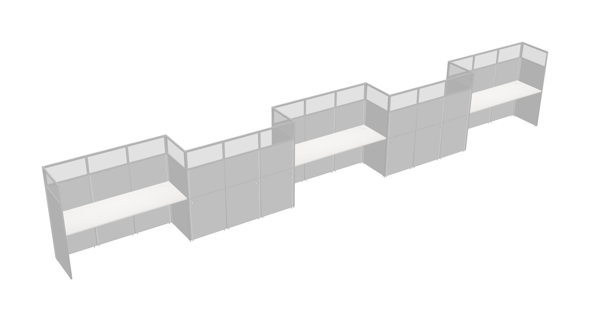 White Rectangular Cubicle Workstations For 5 - Zigzag Formation