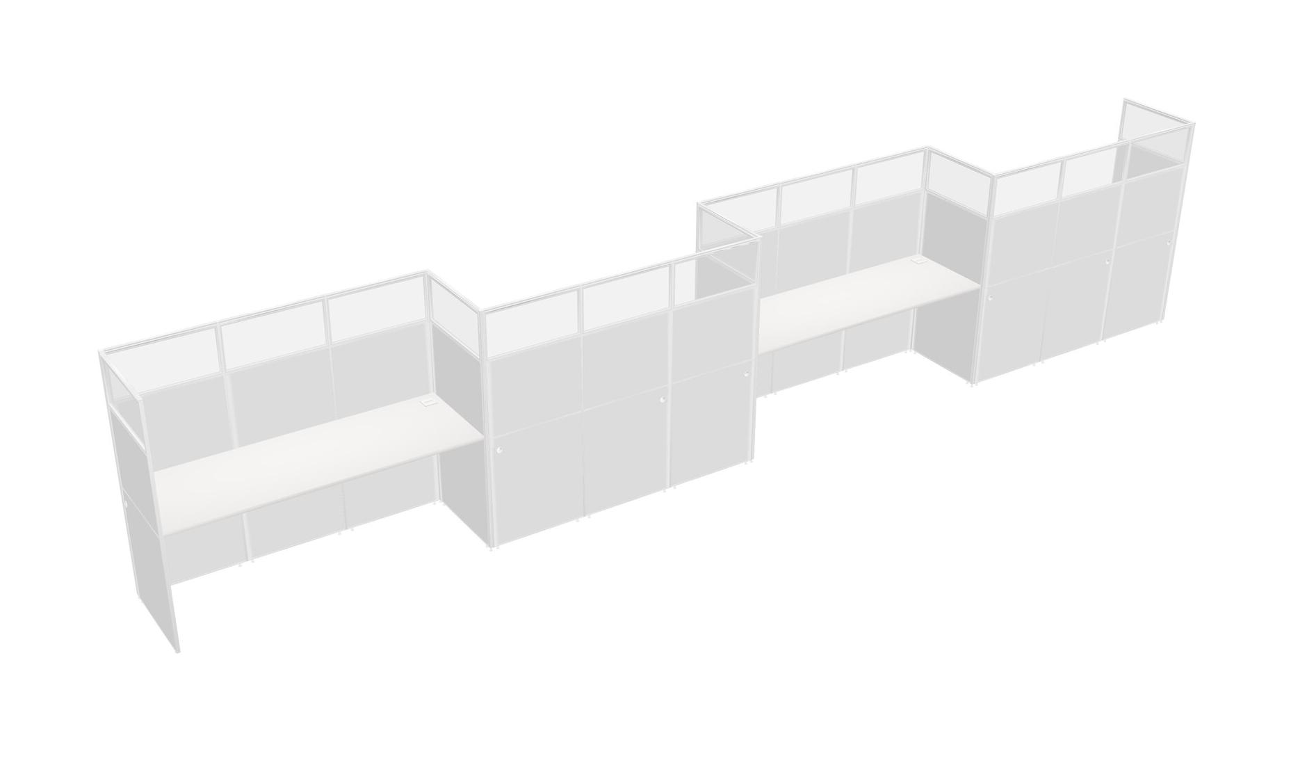 White Rectangular Cubicle Workstations For 4 - Zigzag Formation
