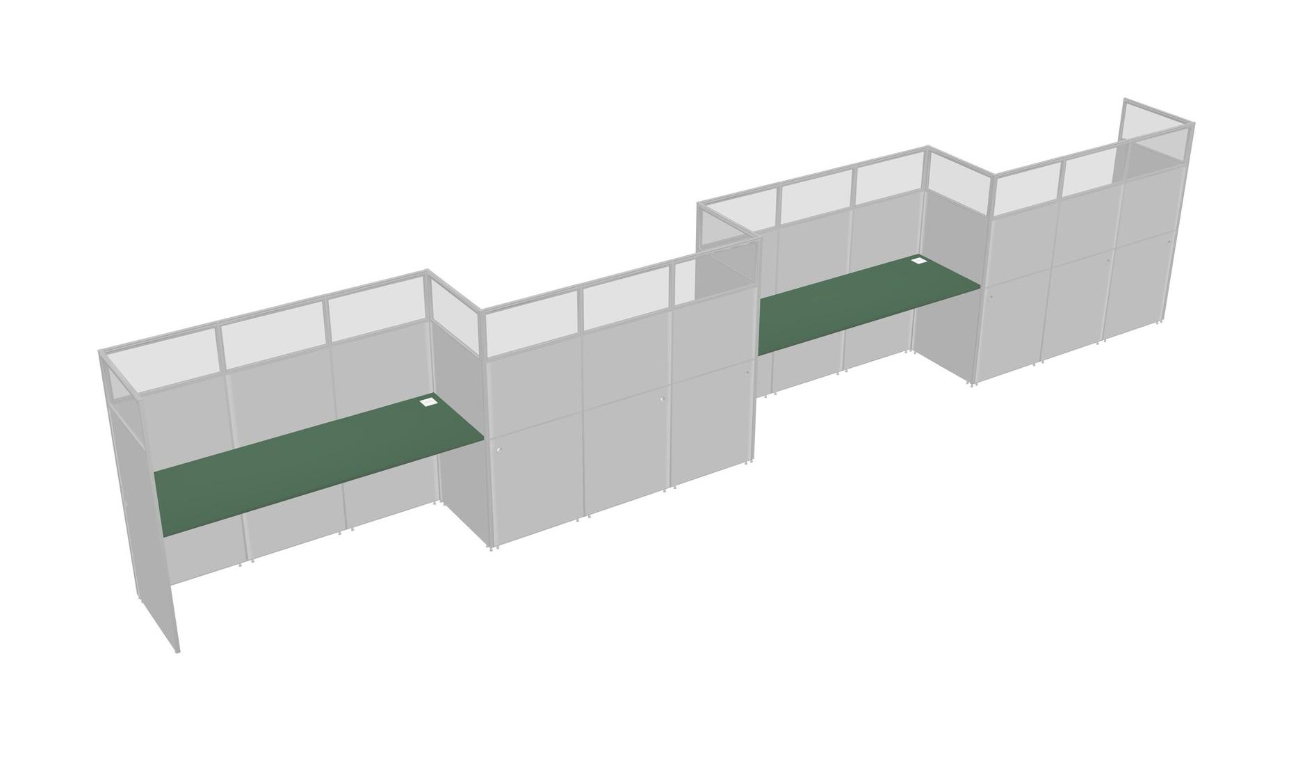 Green Rectangular Cubicle Workstations For 4 - Zigzag Formation