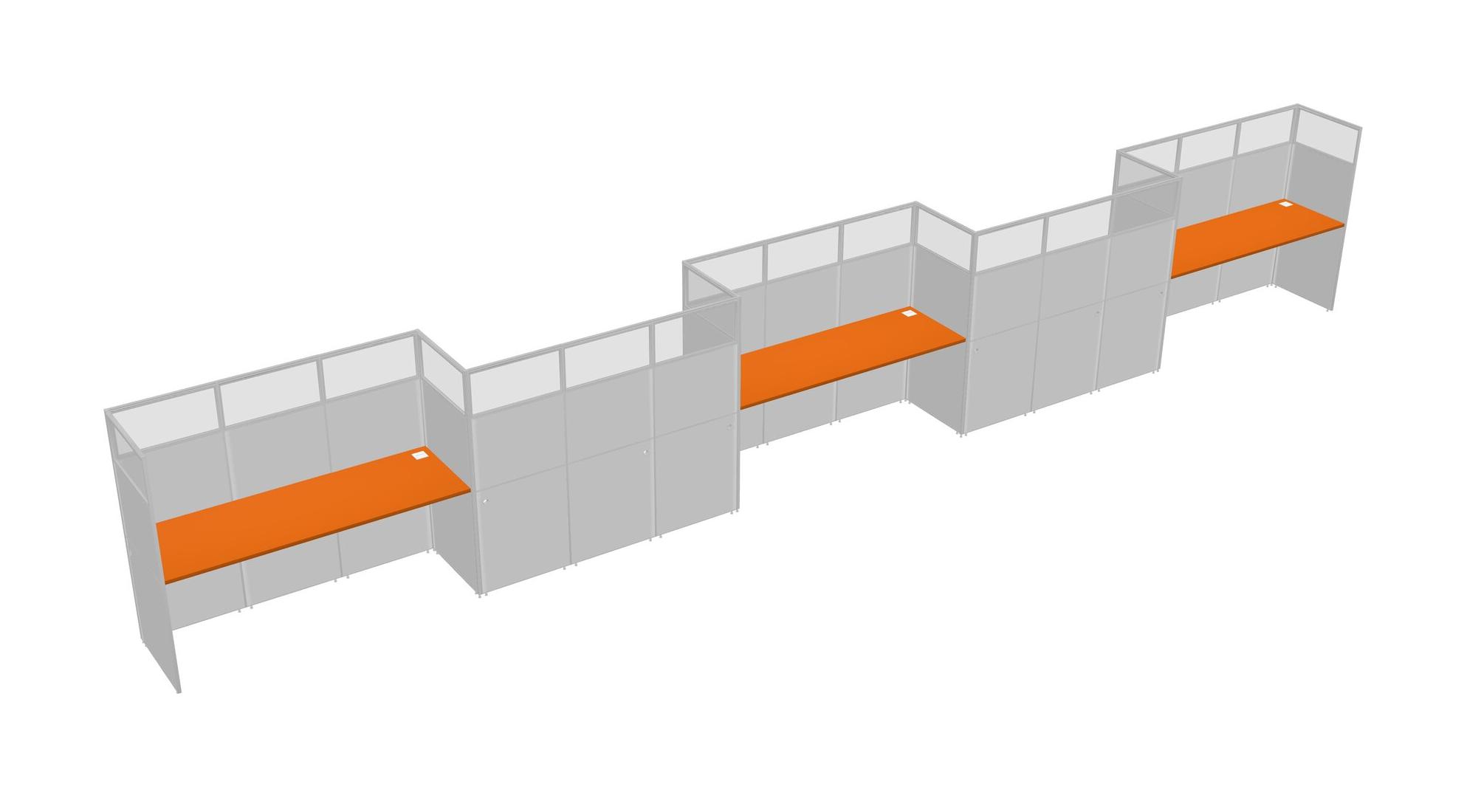 Orange Rectangular Cubicle Workstations For 5 - Zigzag Formation