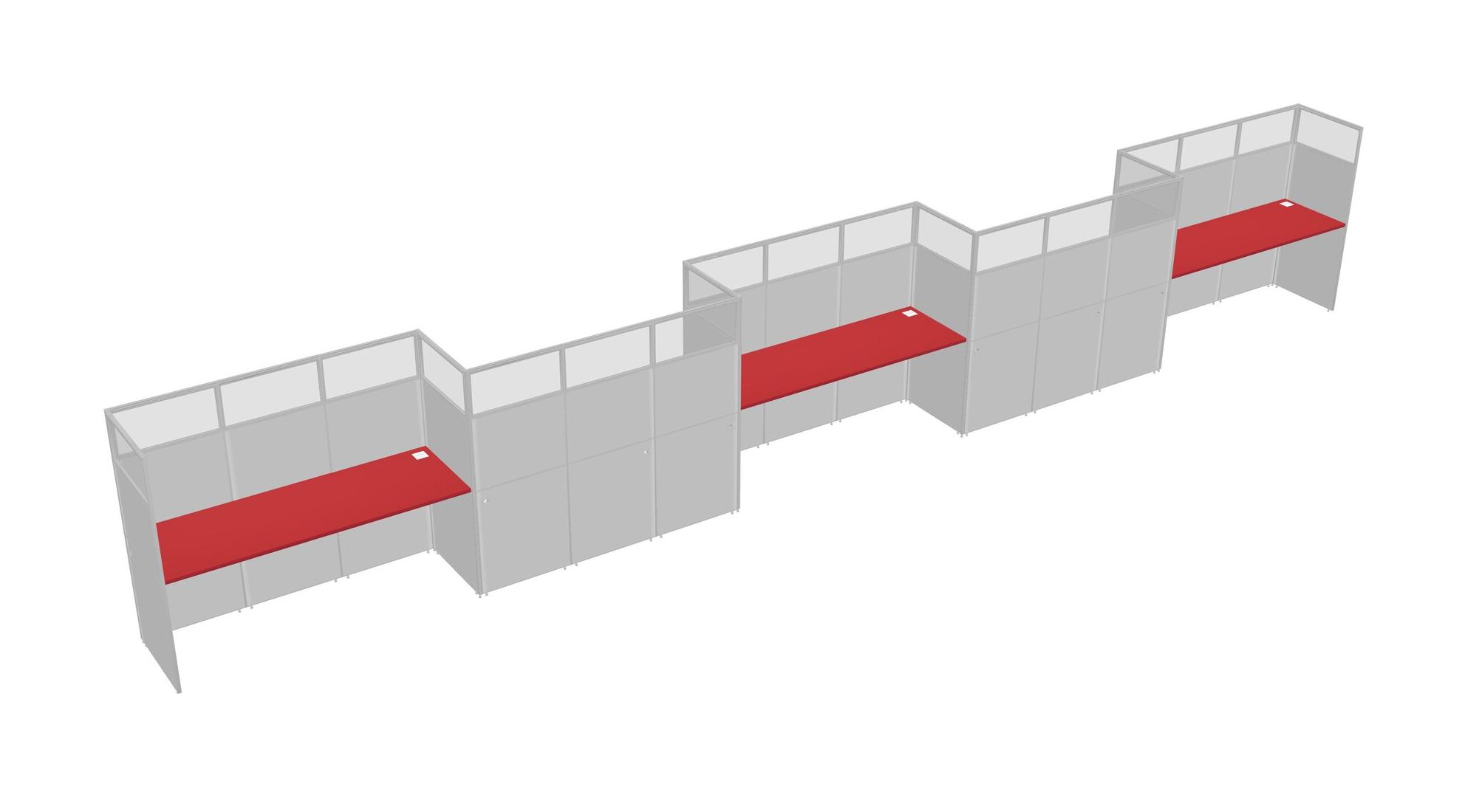 Prism Red Rectangular Cubicle Workstations For 5 - Zigzag Formation