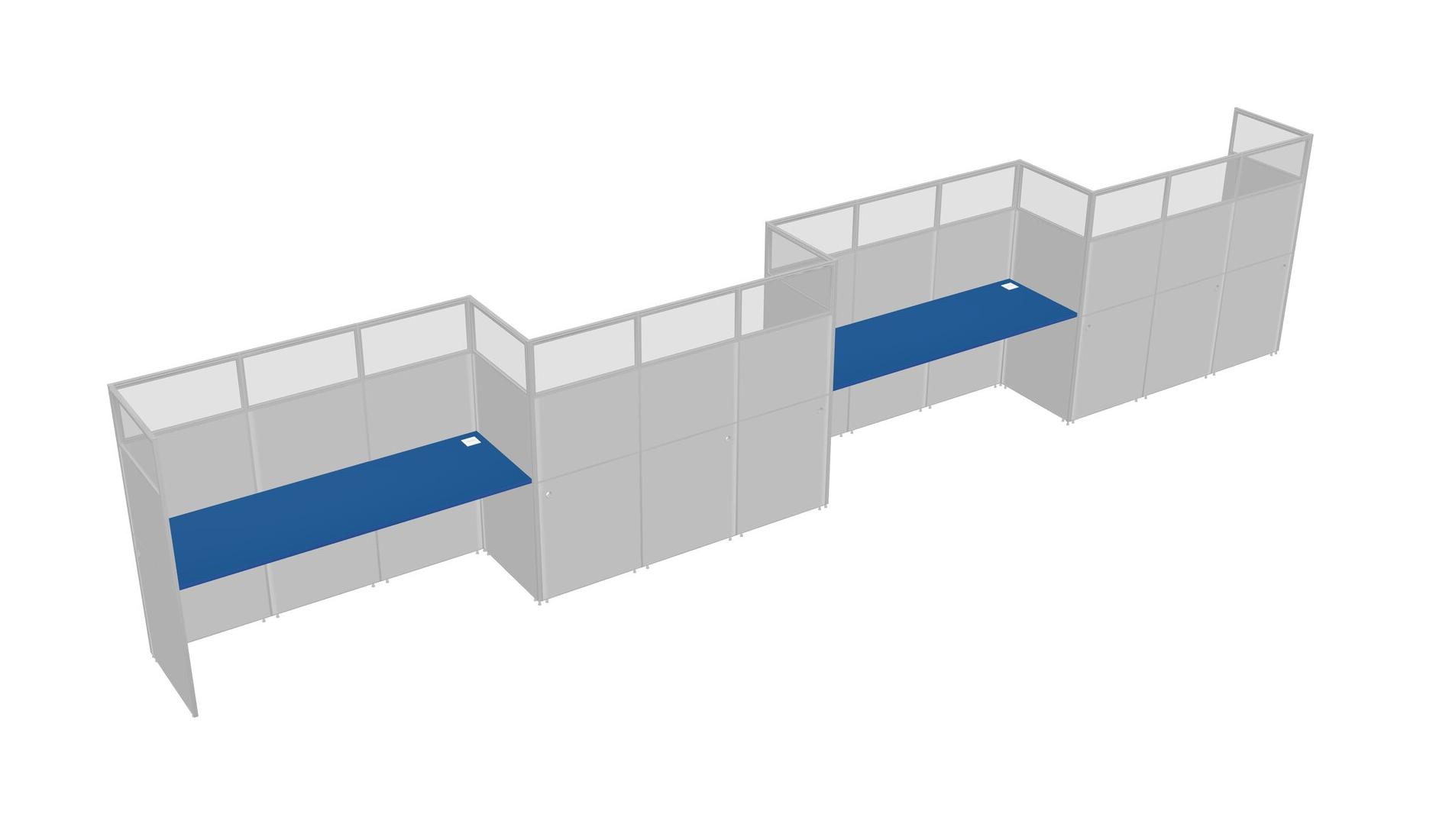 Prism Blue Rectangular Cubicle Workstations For 4 - Zigzag Formation