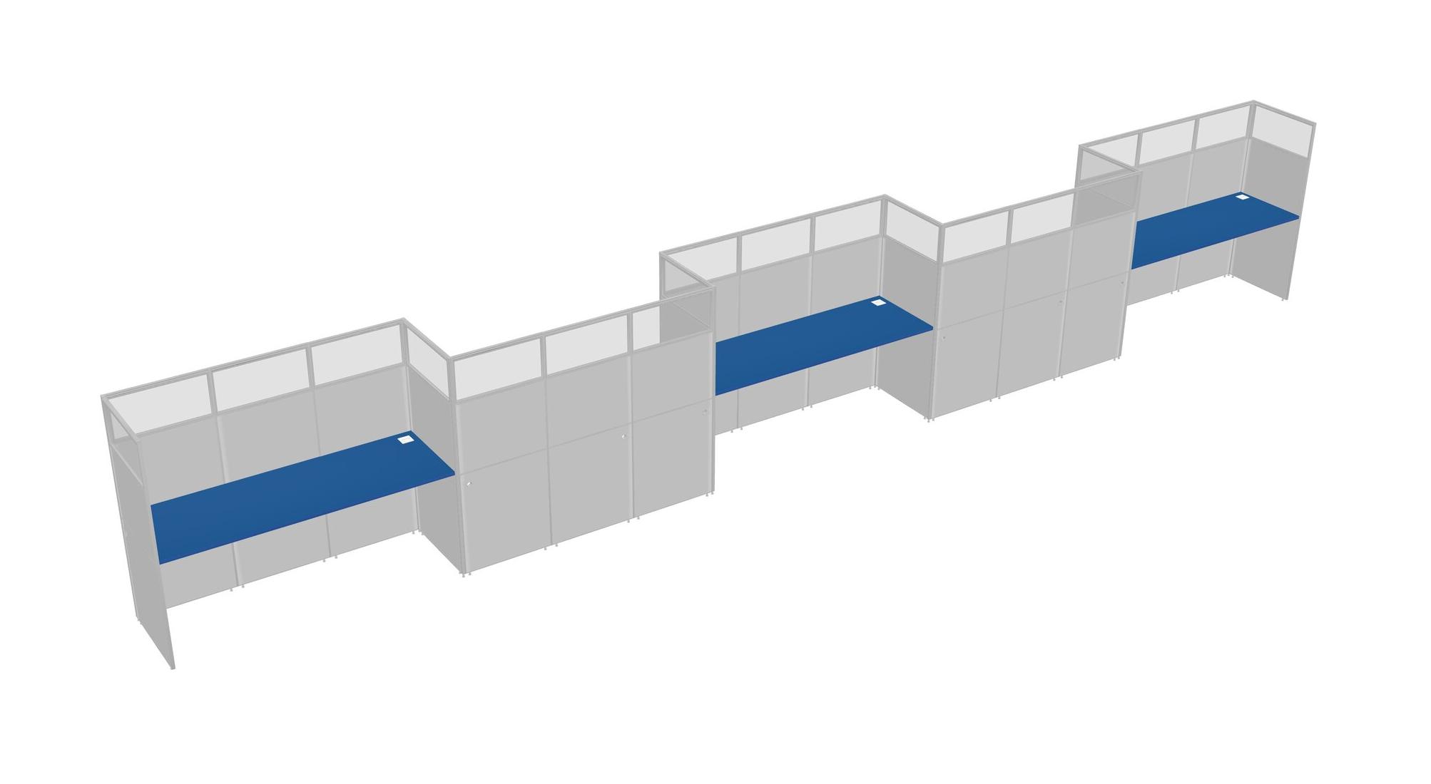 Prism Blue Rectangular Cubicle Workstations For 5 - Zigzag Formation