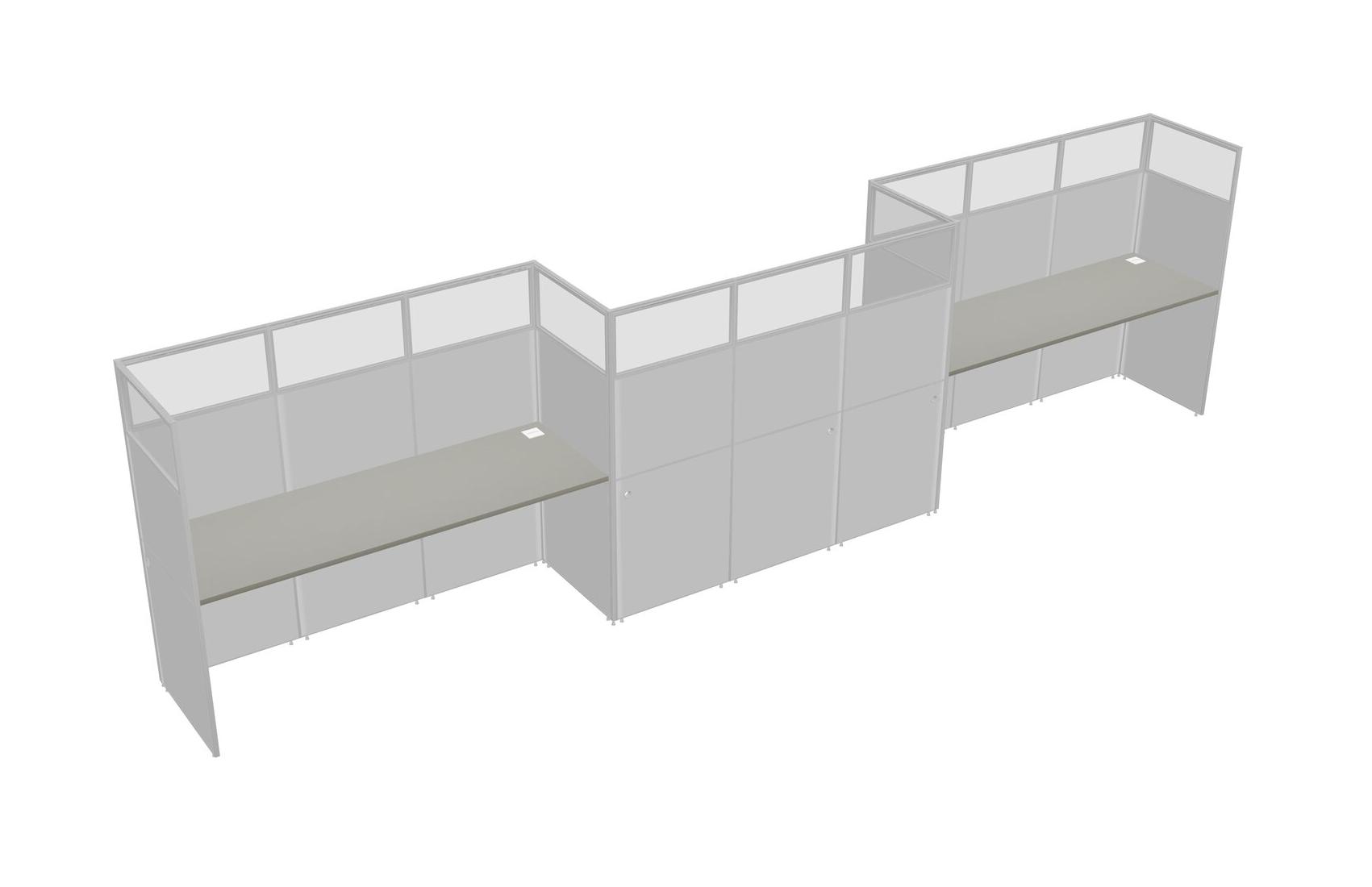 Grey Shadows Rectangular Cubicle Workstations For 3 - Zigzag Formation