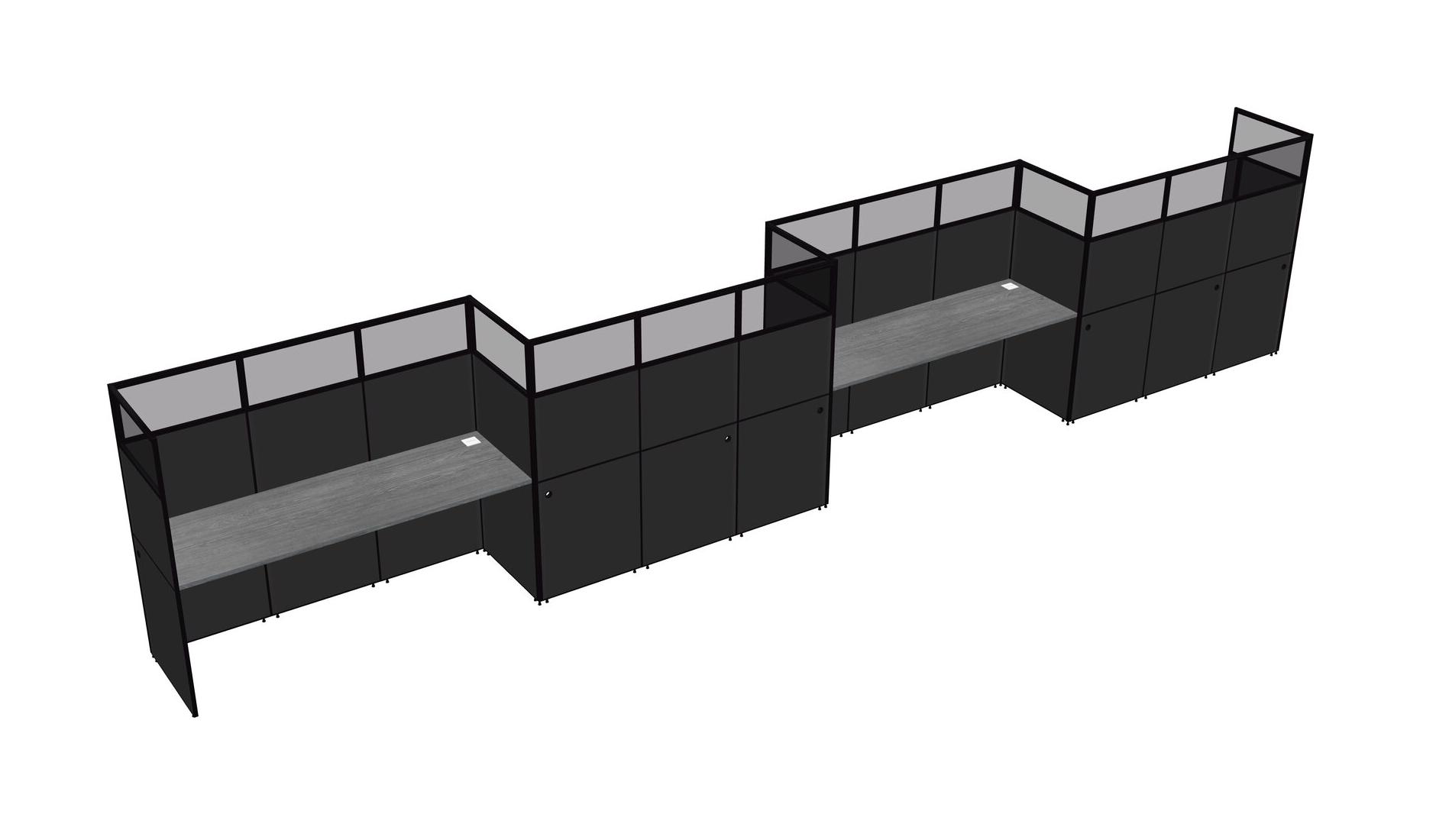 Grey Rectangular Cubicle Workstations For 4 - Zigzag Formation