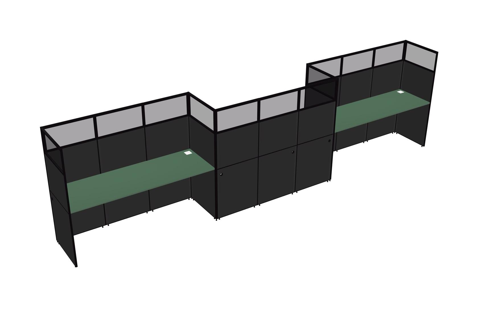 Green Rectangular Cubicle Workstations For 3 - Zigzag Formation