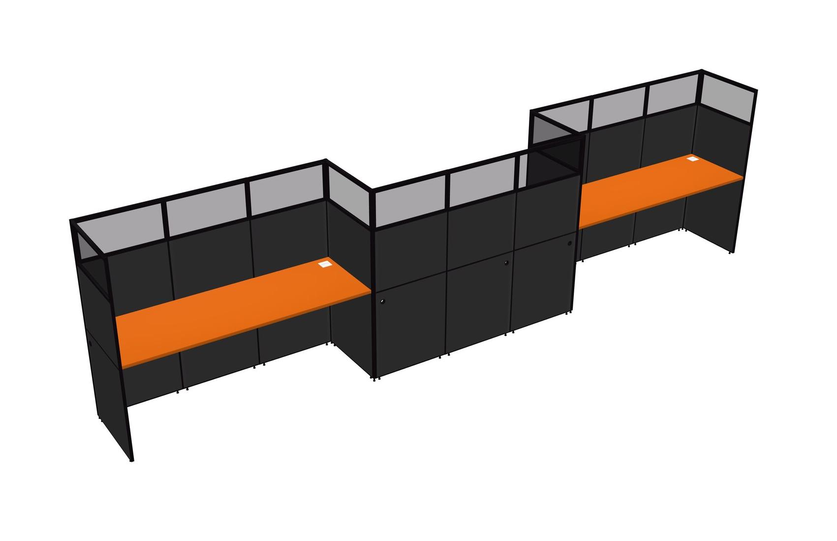 Orange Rectangular Cubicle Workstations For 3 - Zigzag Formation