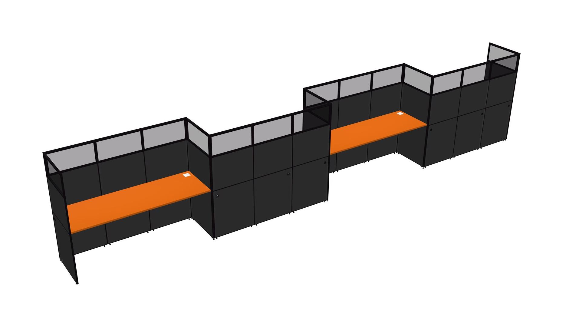 Orange Rectangular Cubicle Workstations For 4 - Zigzag Formation