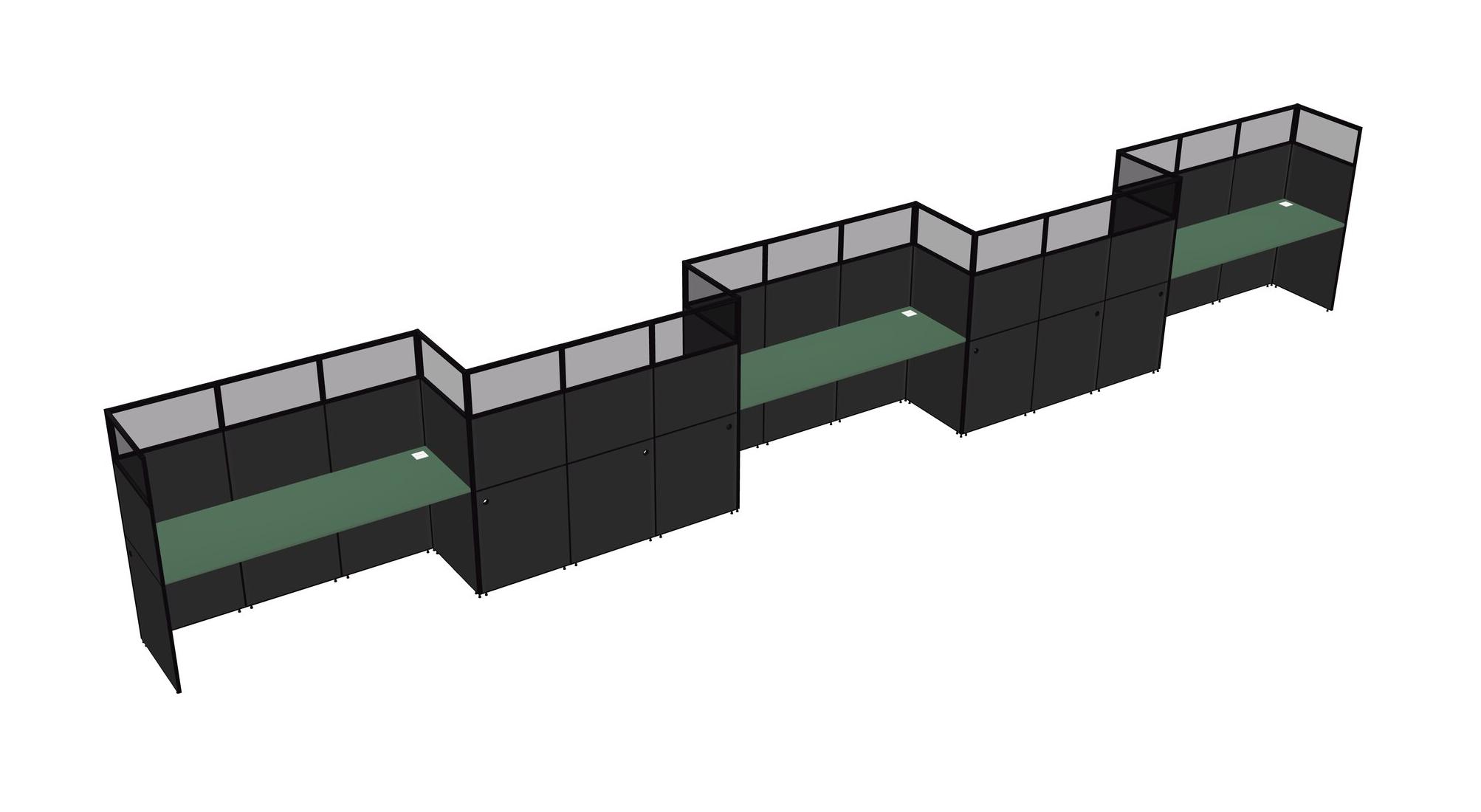 Green Rectangular Cubicle Workstations For 5 - Zigzag Formation