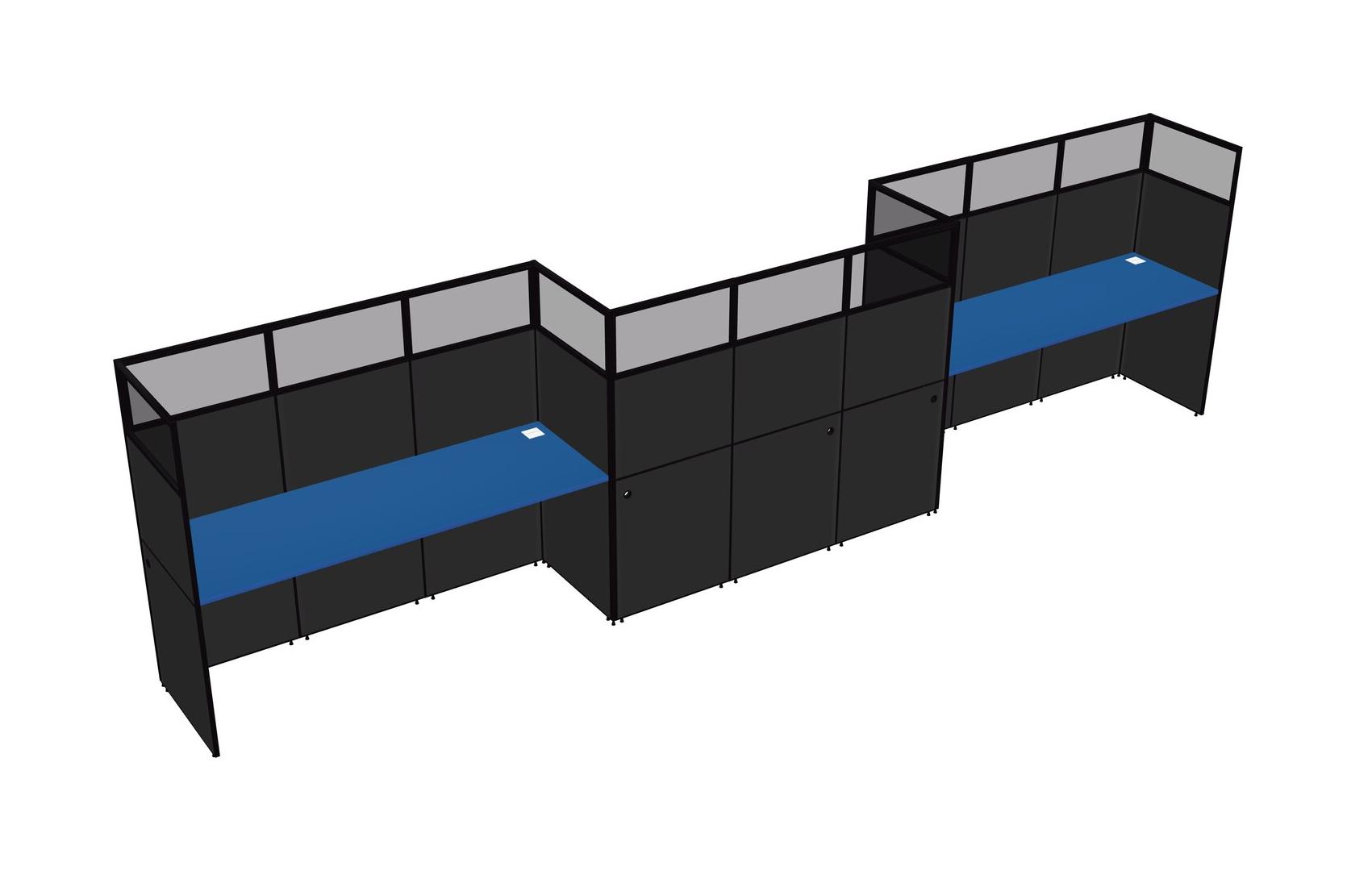 Prism Blue Rectangular Cubicle Workstations For 3 - Zigzag Formation