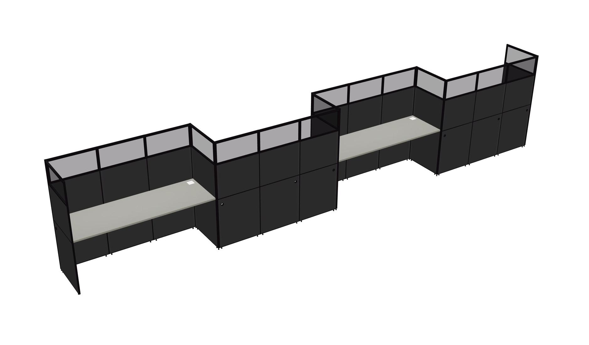 Grey Shadows Rectangular Cubicle Workstations For 4 - Zigzag Formation