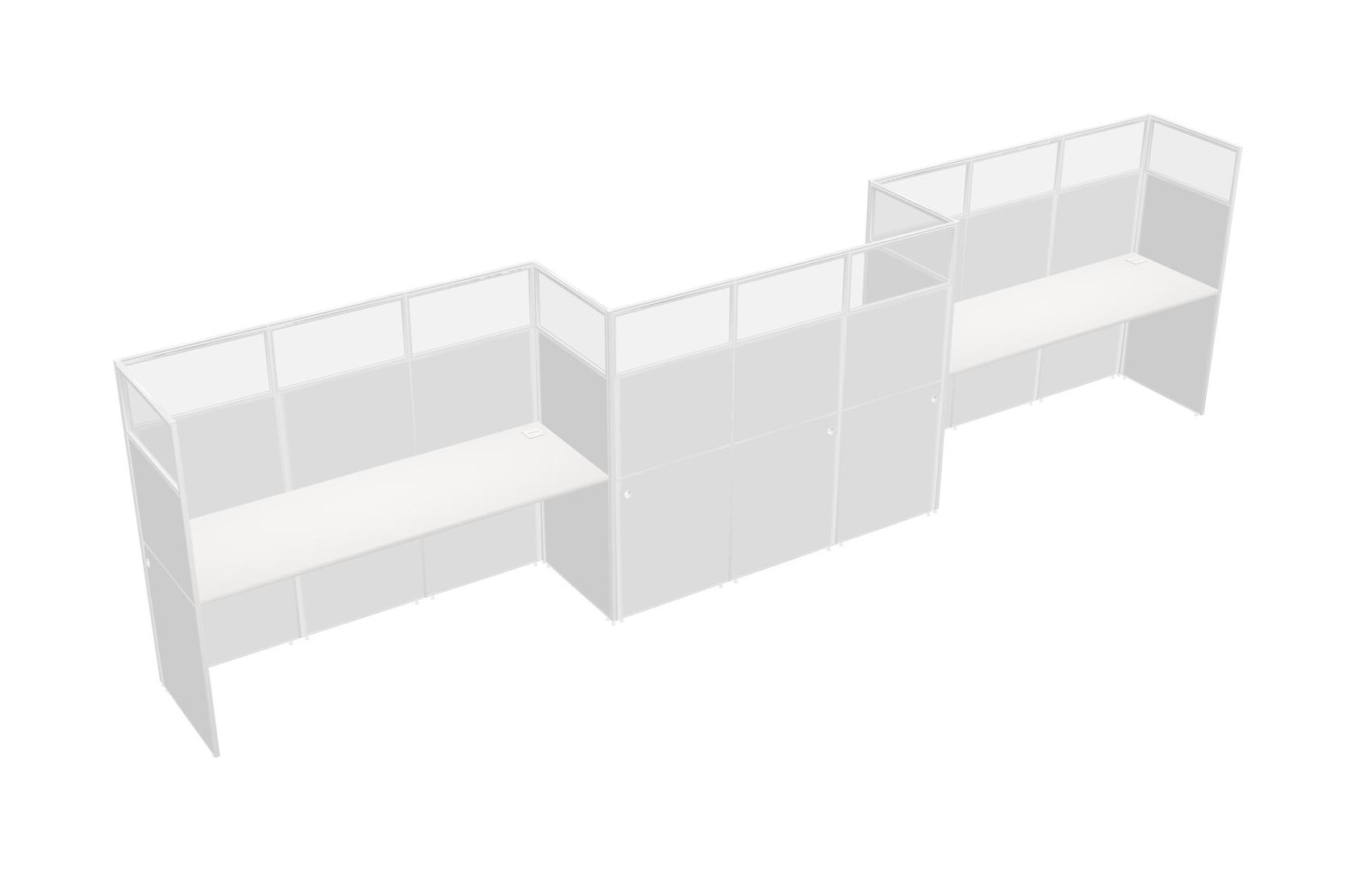 White Rectangular Cubicle Workstations For 3 - Zigzag Formation