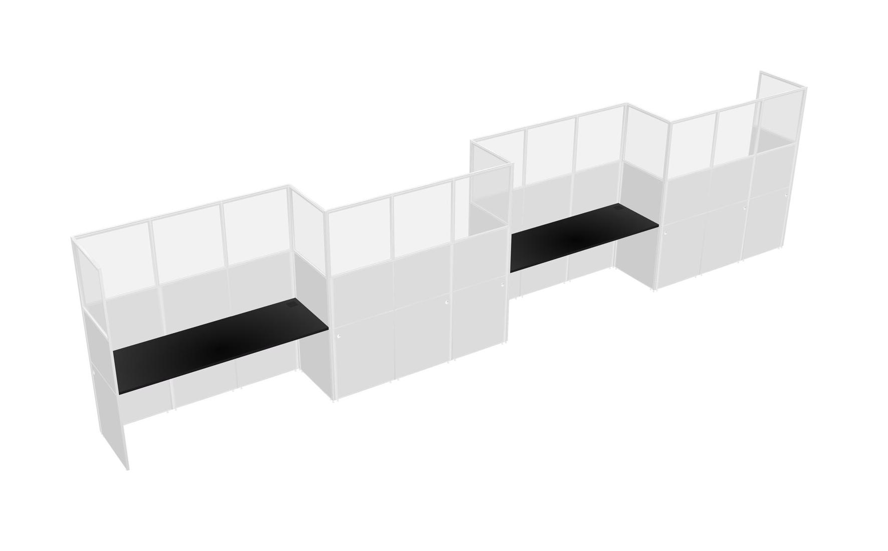 Black Rectangular Cubicle Workstations For 4 - Zigzag Formation