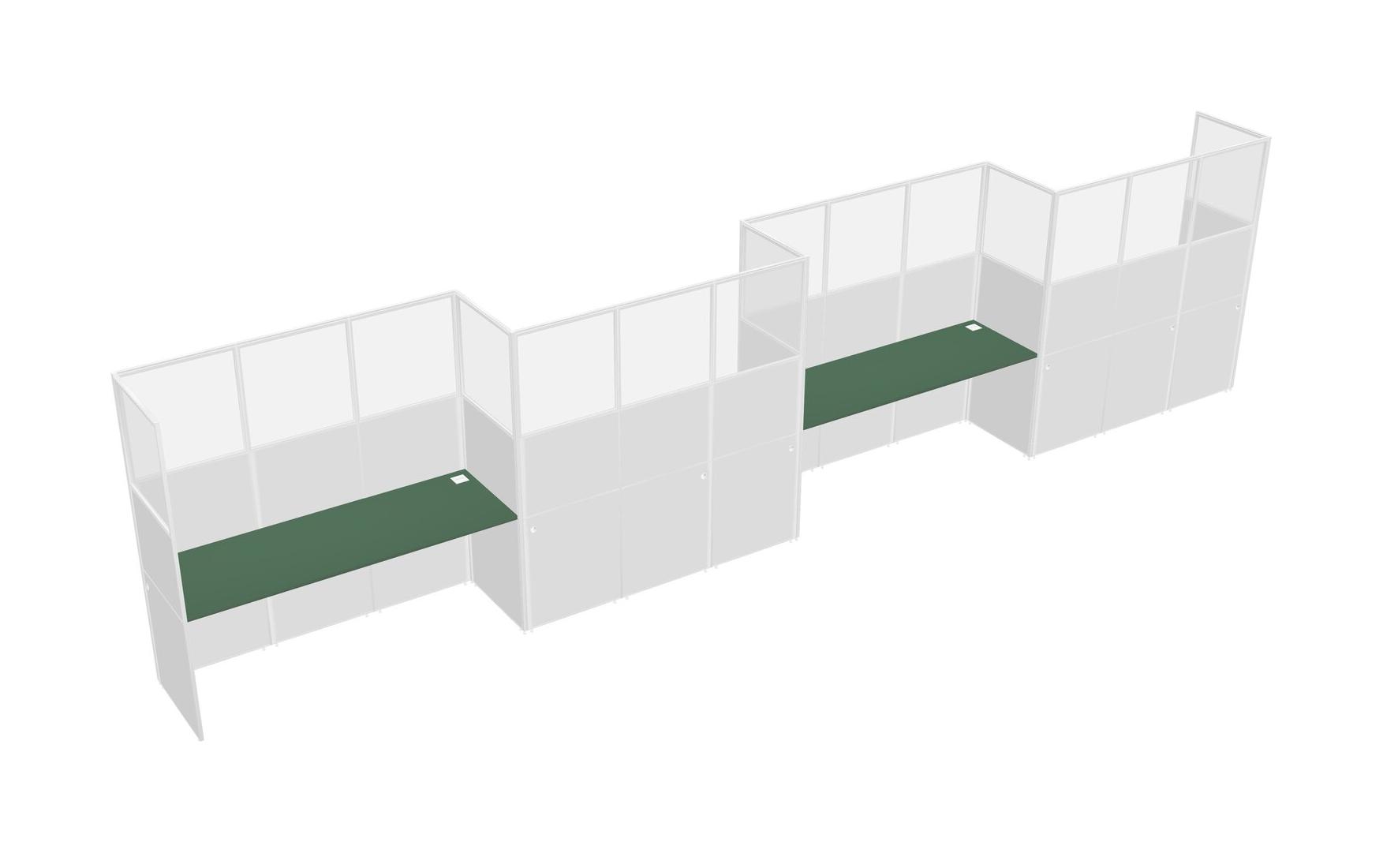Green Rectangular Cubicle Workstations For 4 - Zigzag Formation