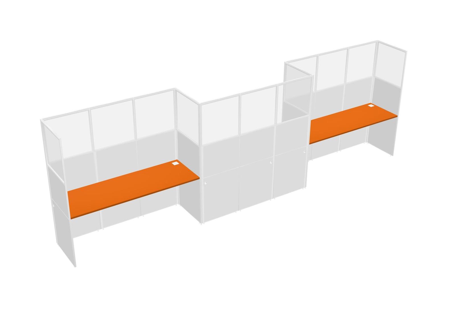 Orange Rectangular Cubicle Workstations For 3 - Zigzag Formation
