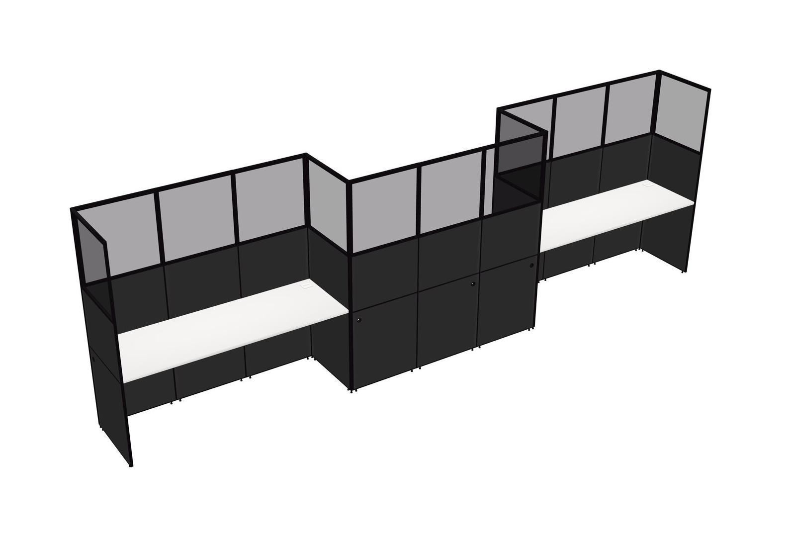 White Rectangular Cubicle Workstations For 3 - Zigzag Formation