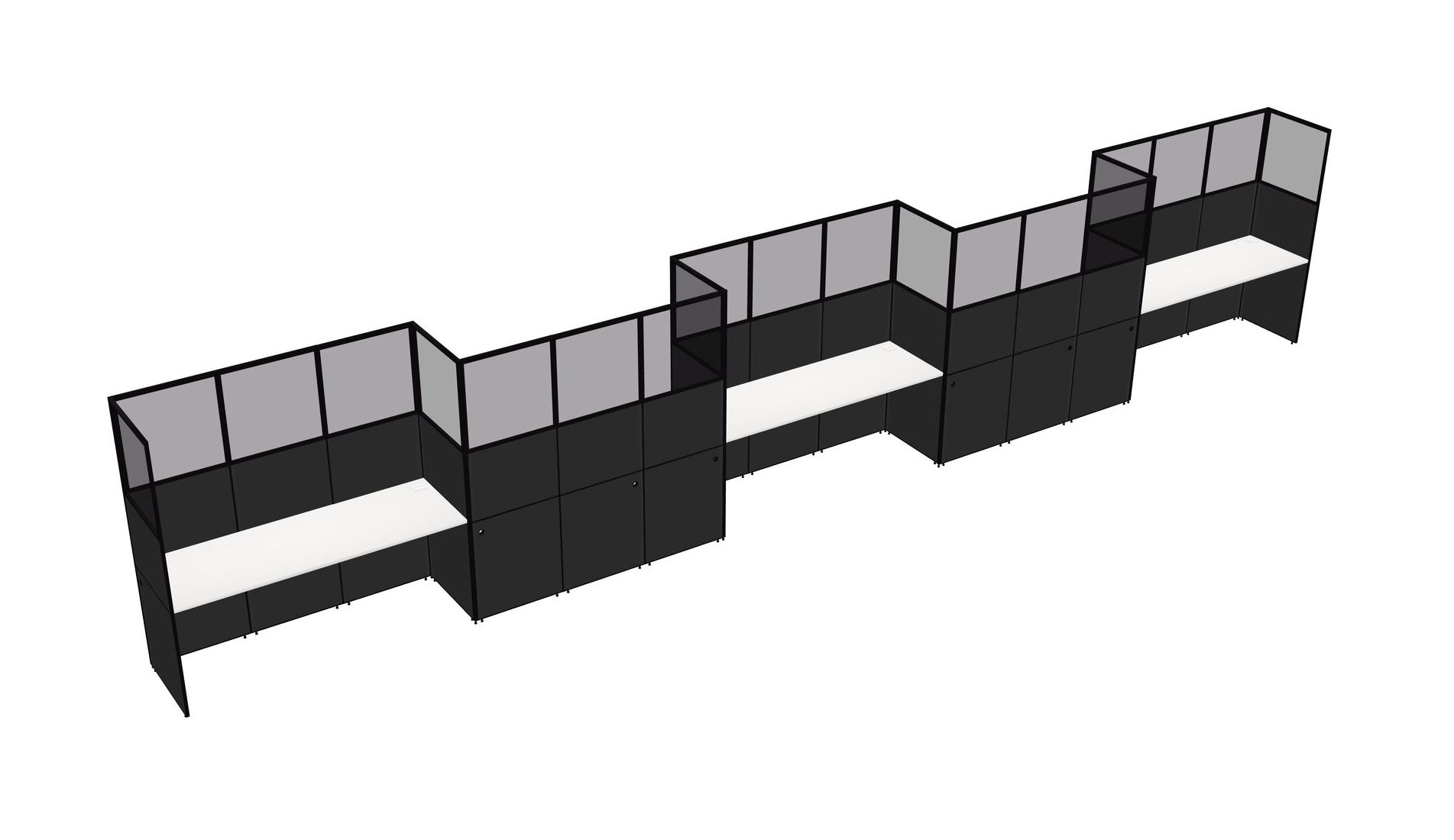 White Rectangular Cubicle Workstations For 5 - Zigzag Formation