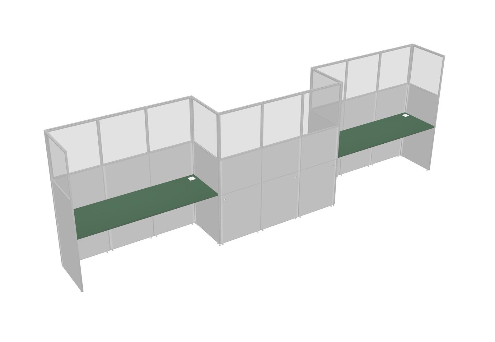 Green Rectangular Cubicle Workstations For 3 - Zigzag Formation