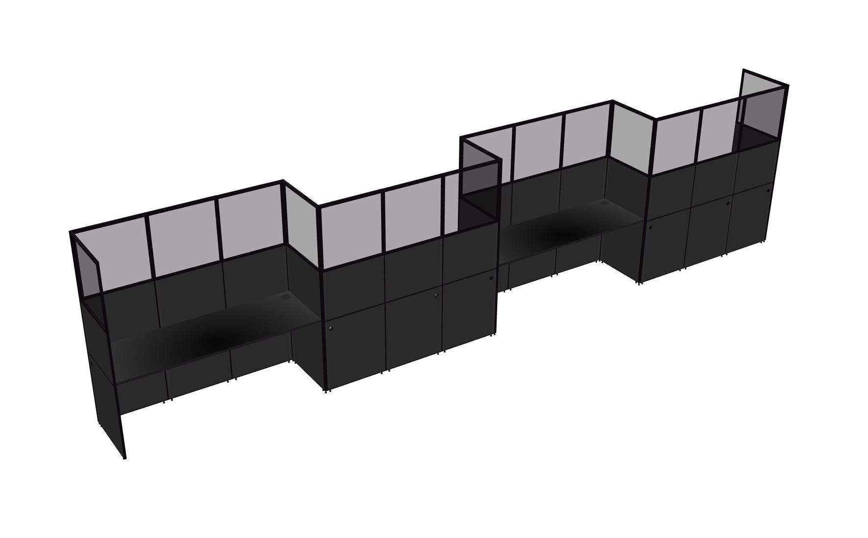 Black Rectangular Cubicle Workstations For 4 - Zigzag Formation