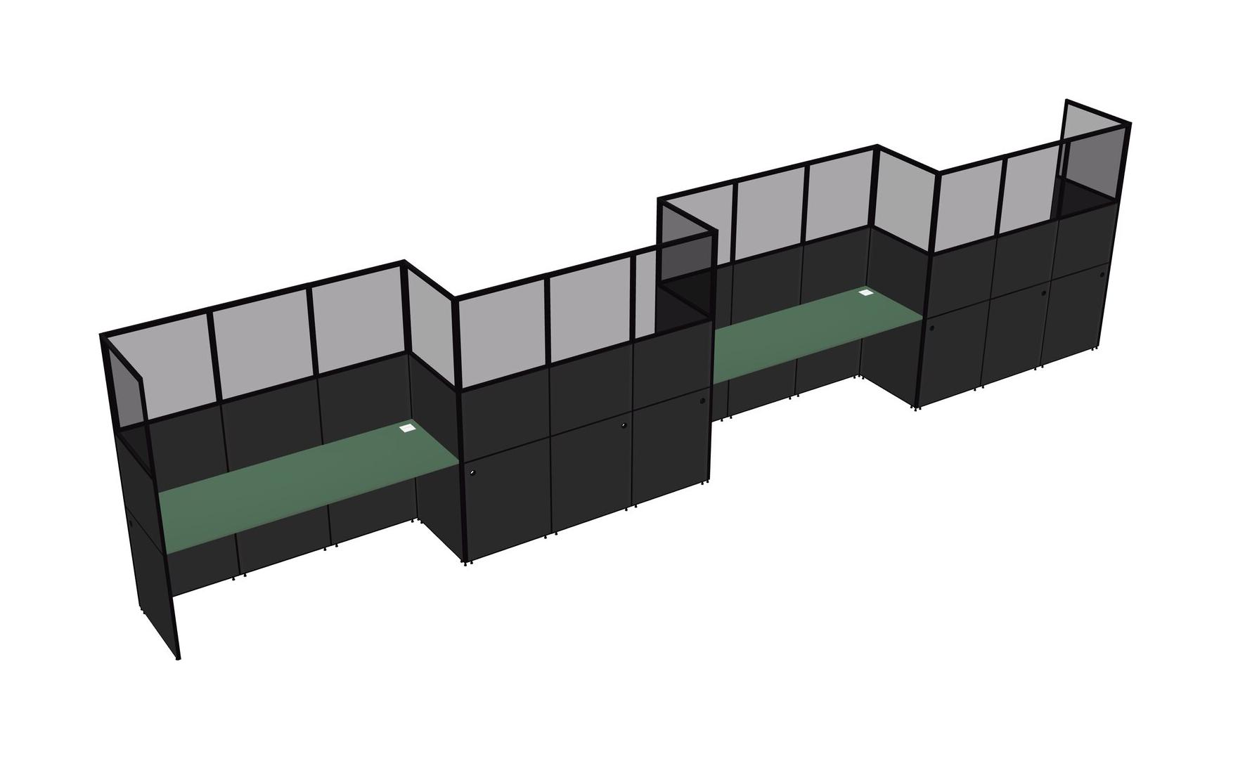 Green Rectangular Cubicle Workstations For 4 - Zigzag Formation