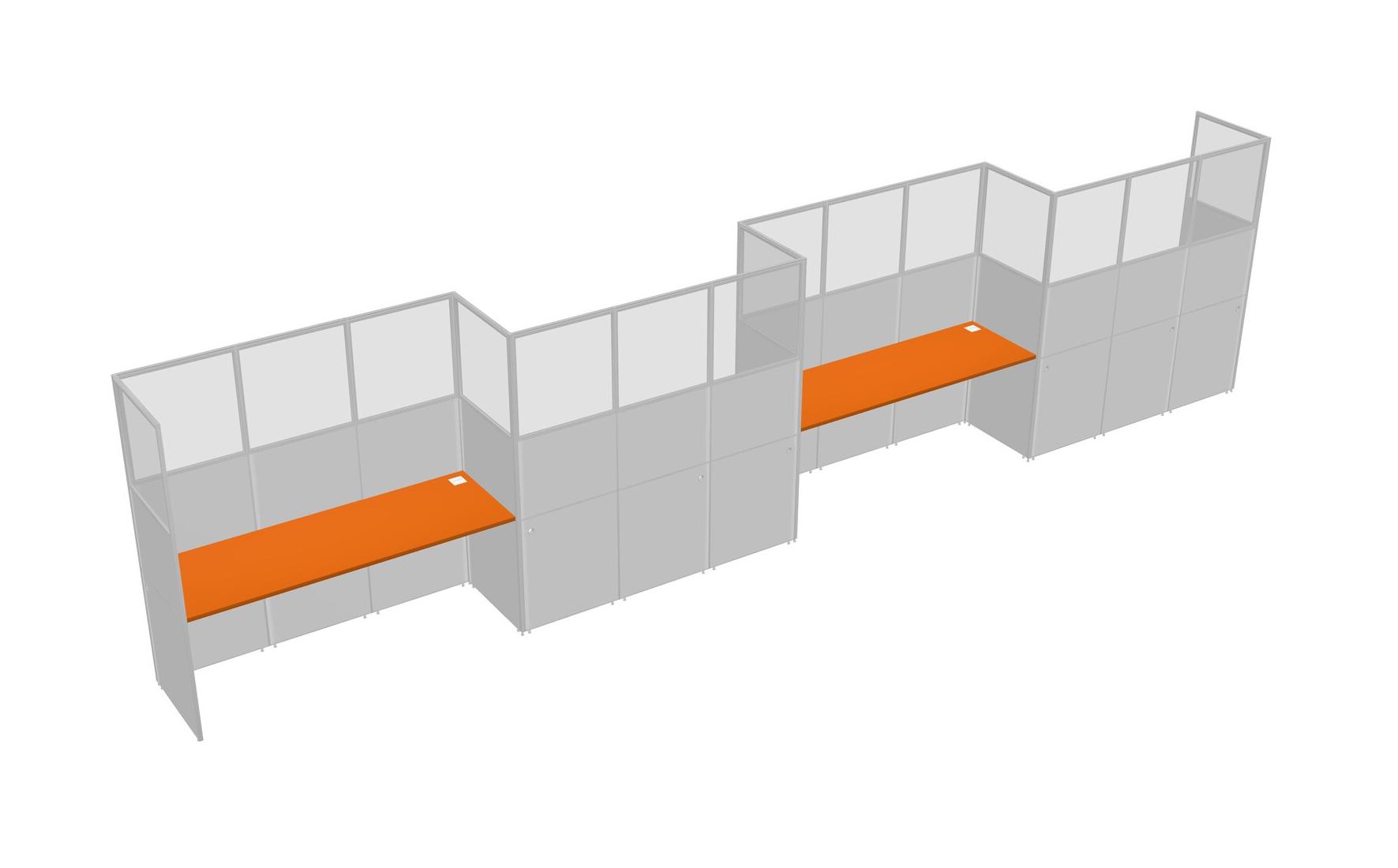 Orange Rectangular Cubicle Workstations For 4 - Zigzag Formation