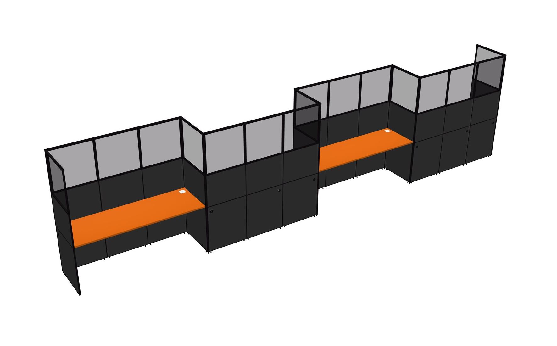 Orange Rectangular Cubicle Workstations For 4 - Zigzag Formation
