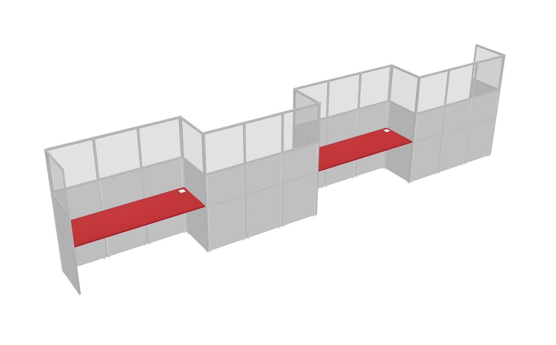 Prism Red Rectangular Cubicle Workstations For 4 - Zigzag Formation