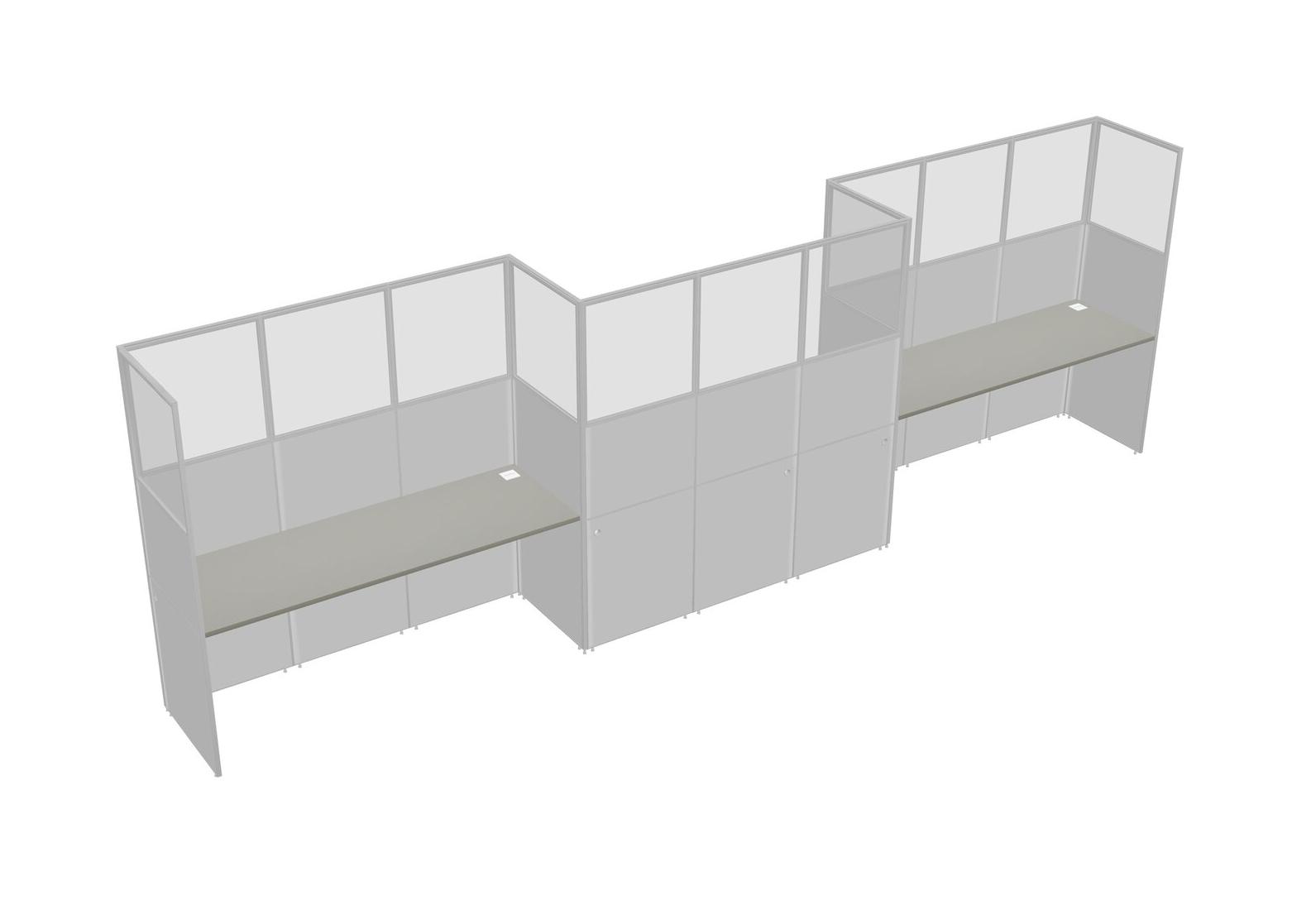 Grey Shadows Rectangular Cubicle Workstations For 3 - Zigzag Formation