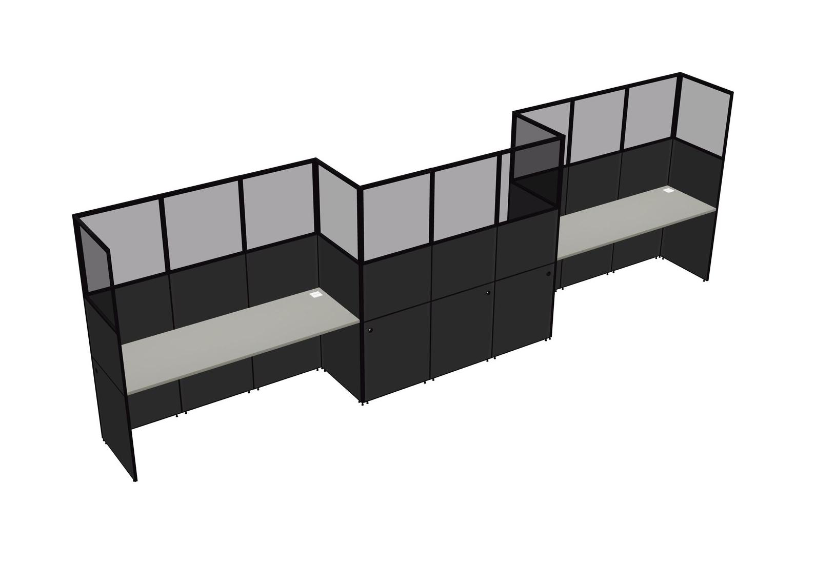 Grey Shadows Rectangular Cubicle Workstations For 3 - Zigzag Formation