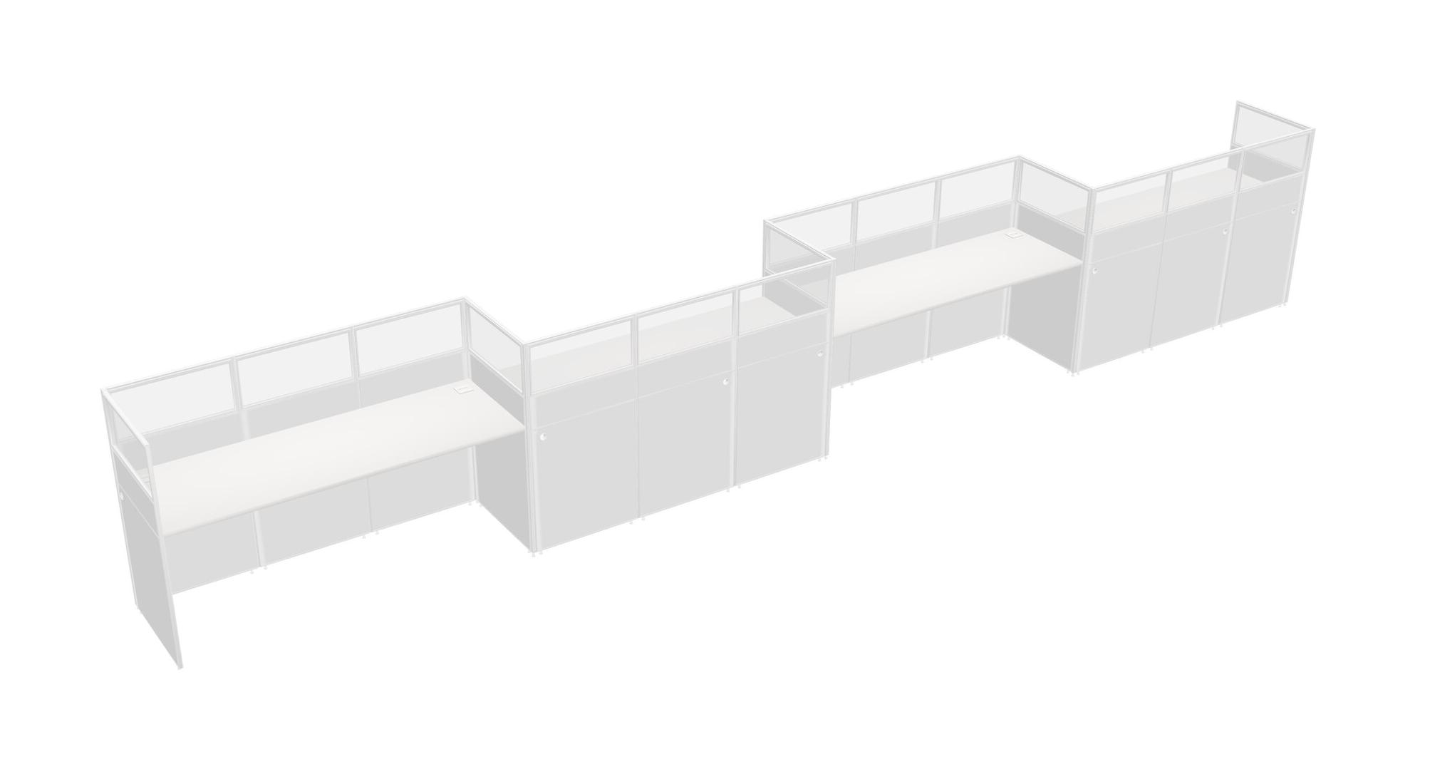 White Rectangular Cubicle Workstations For 4 - Zigzag Formation