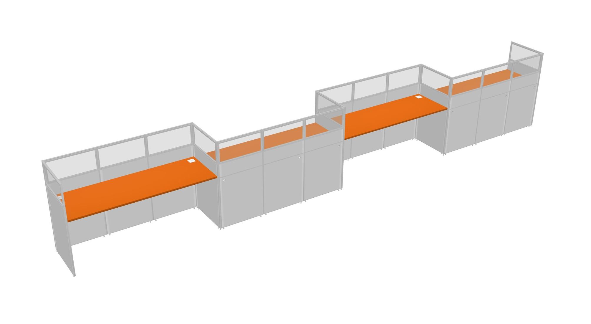 Orange Rectangular Cubicle Workstations For 4 - Zigzag Formation