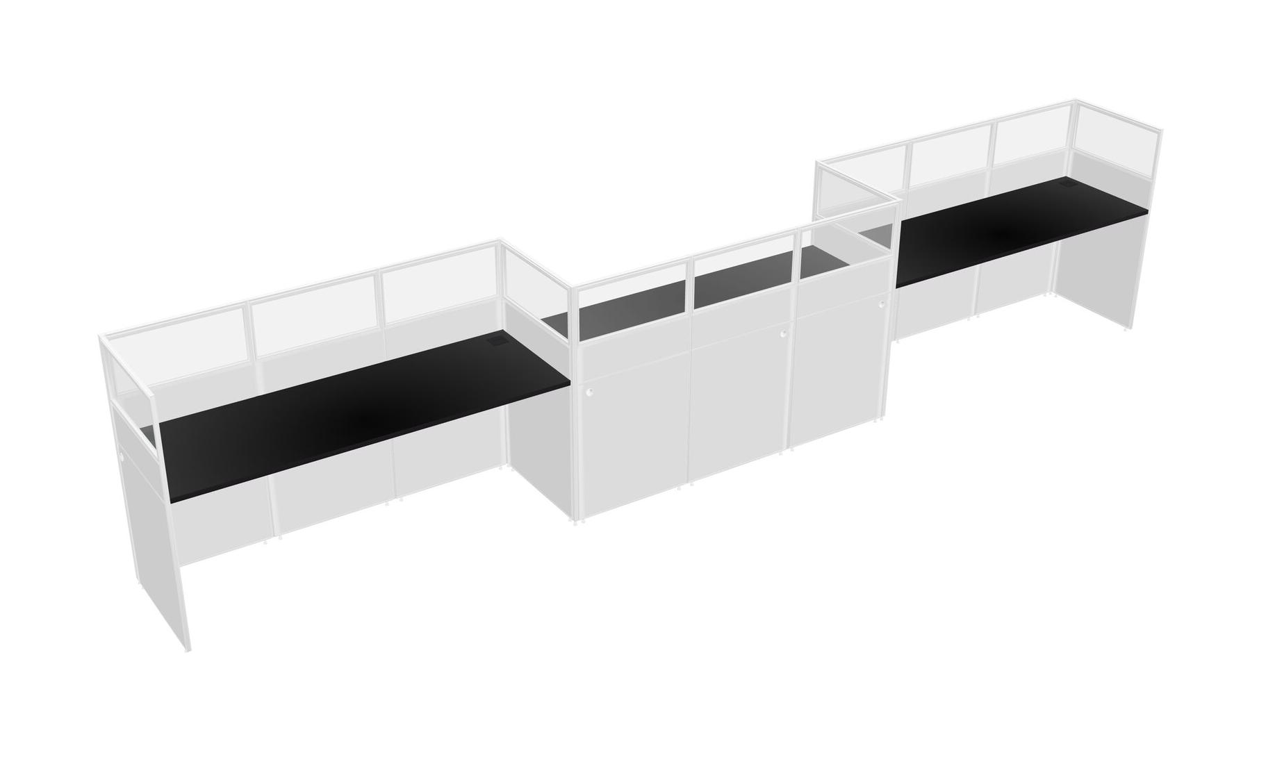 Black Rectangular Cubicle Workstations For 3 - Zigzag Formation
