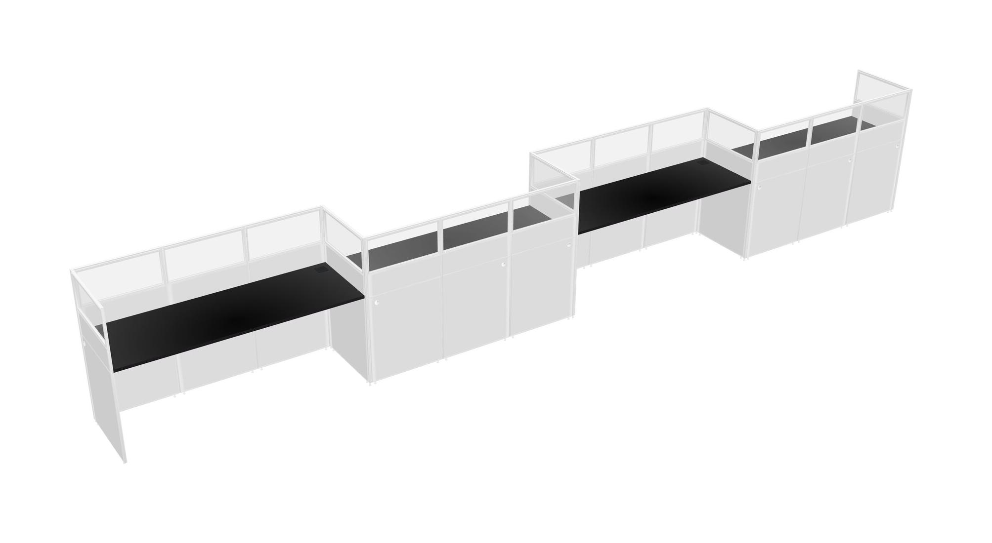 Black Rectangular Cubicle Workstations For 4 - Zigzag Formation
