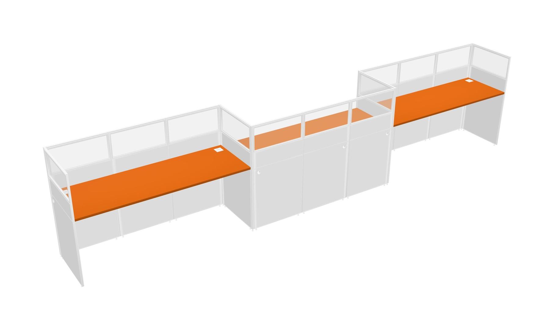 Orange Rectangular Cubicle Workstations For 3 - Zigzag Formation