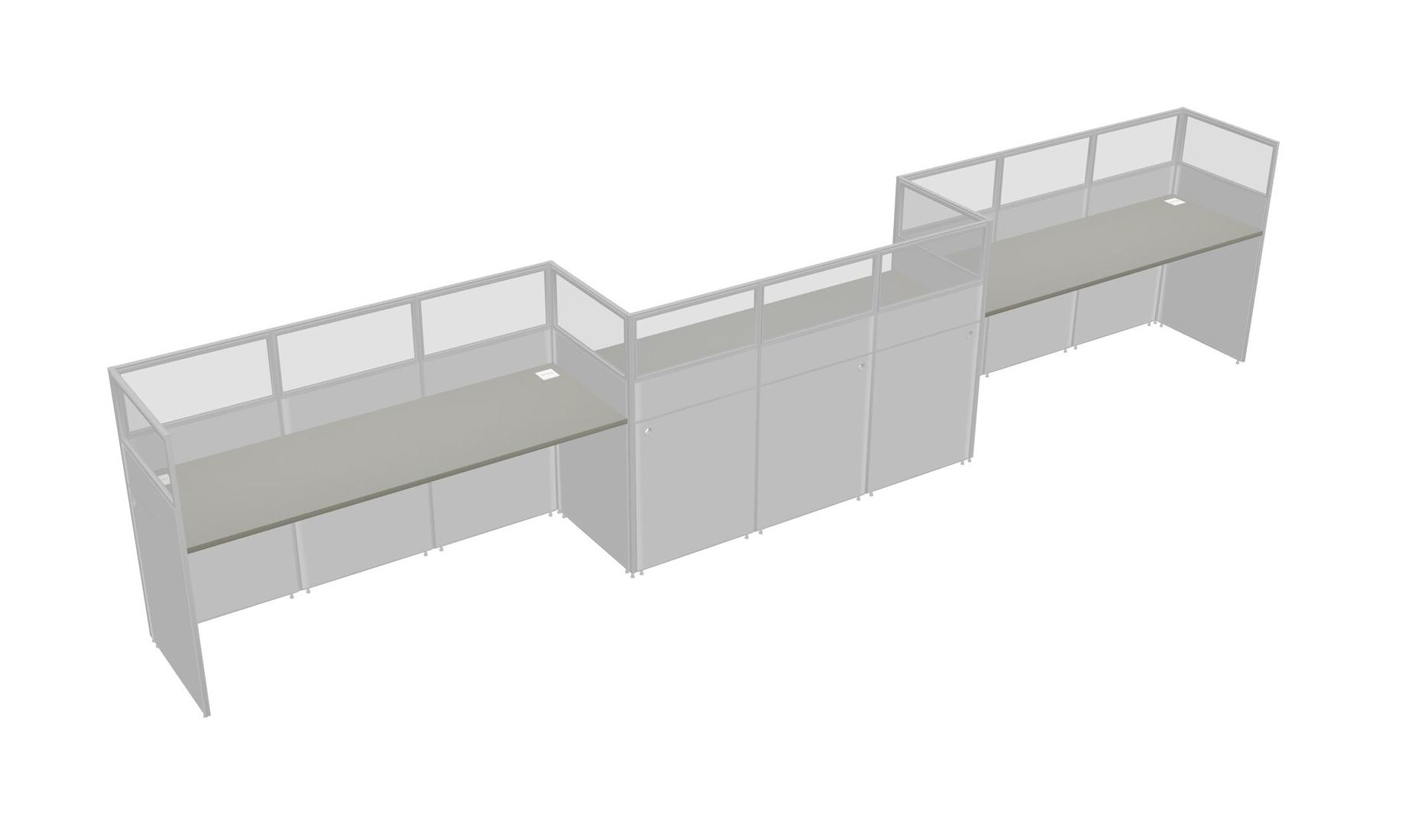 Grey Shadows Rectangular Cubicle Workstations For 3 - Zigzag Formation