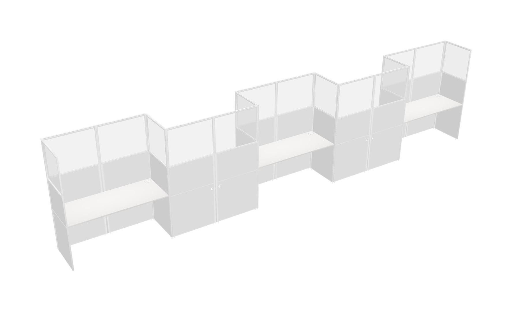 White Rectangular Cubicle Workstations For 5 - Zigzag Formation